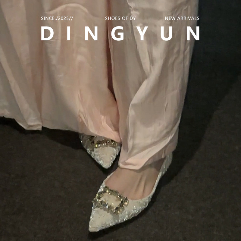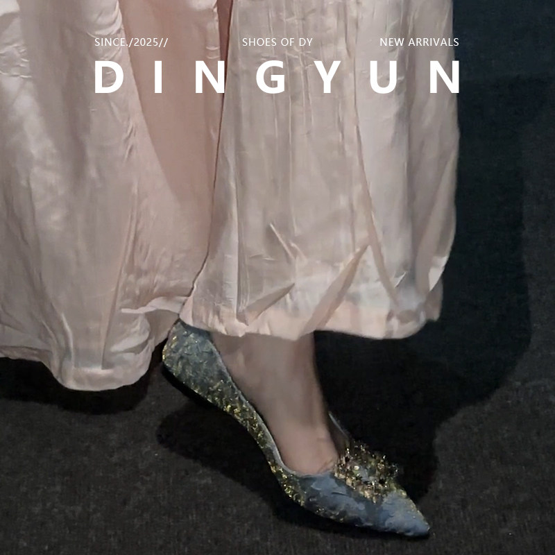 羊皮版dingyun丁允婚鞋尖头平底鞋内增高单鞋早春漂亮伴娘鞋低跟