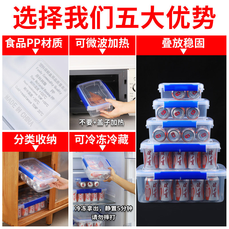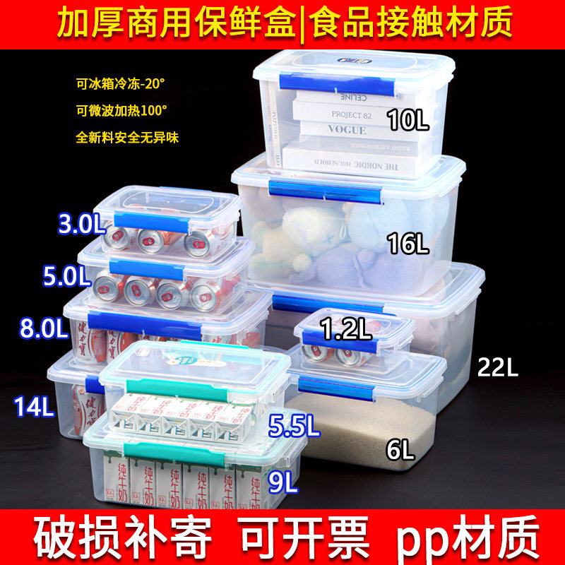 保鲜盒食品级商用冰箱冷冻长方形透明收纳密封带盖大容量塑料盒子