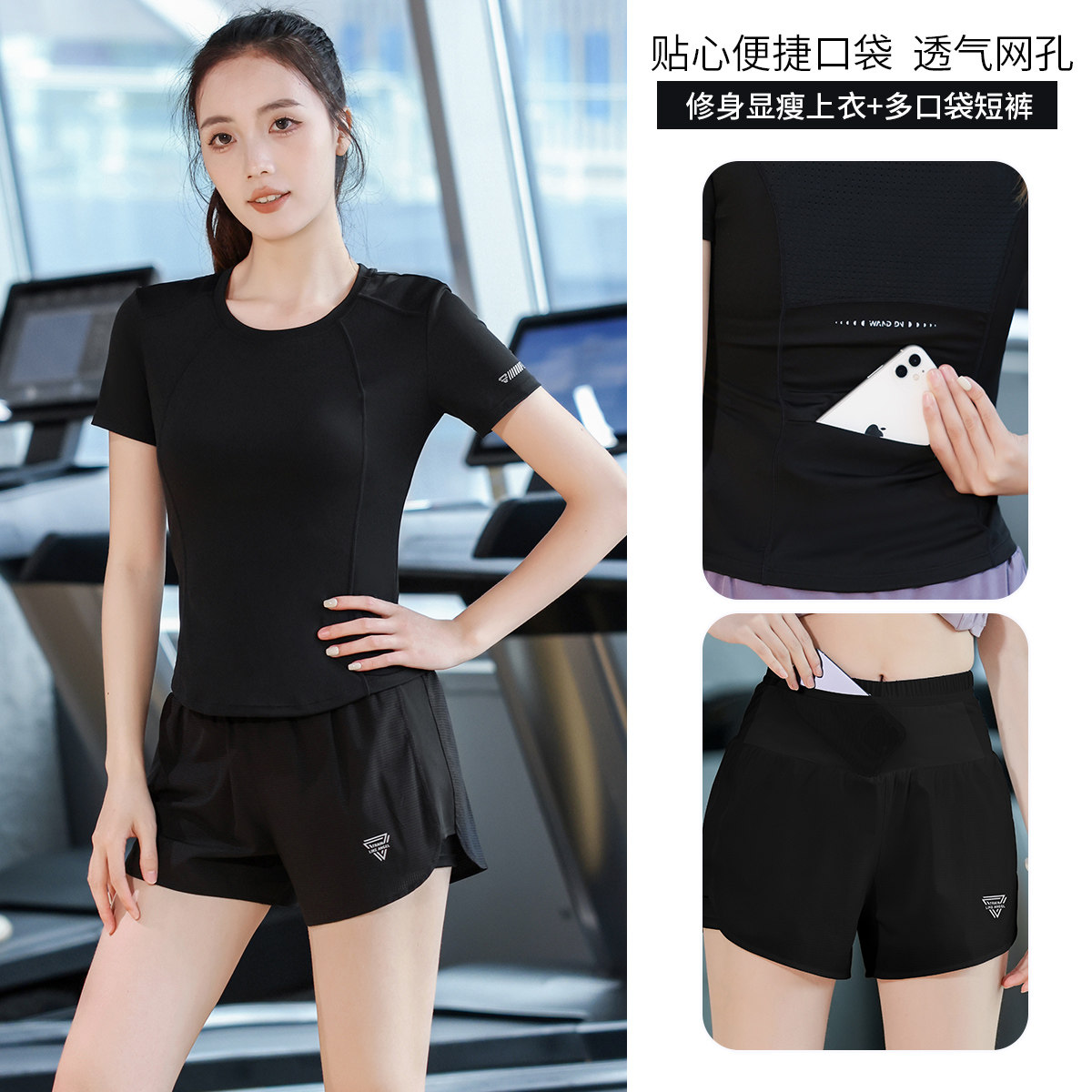 专业跑步速干套装女夏季透气薄款短袖健身训练服网红显瘦跳操服