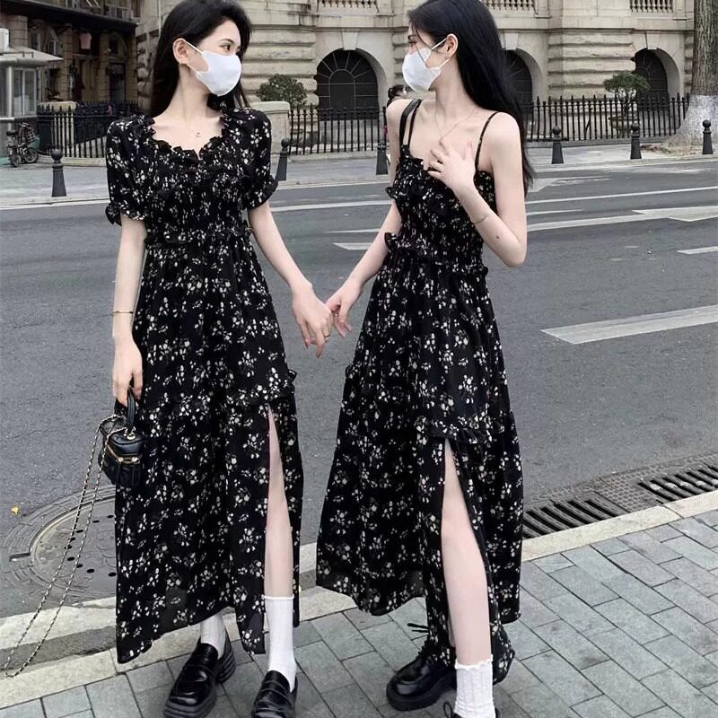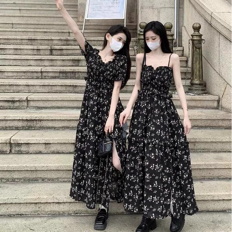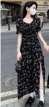 D99221茶歇法式碎花连衣裙套装大码女胖mm气质温柔风遮肚子显瘦夏