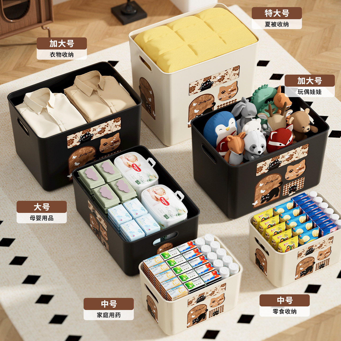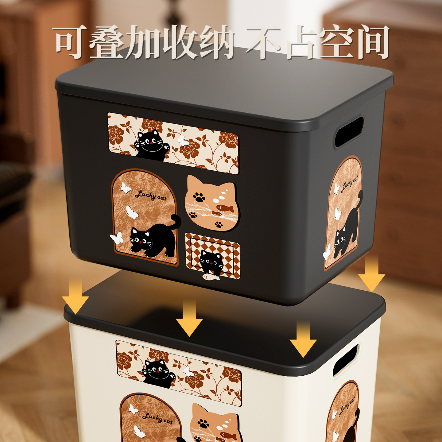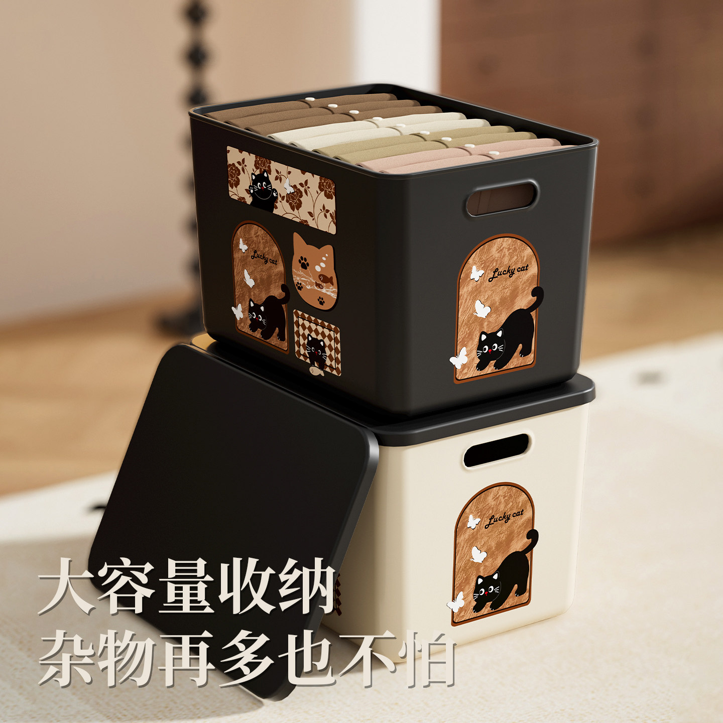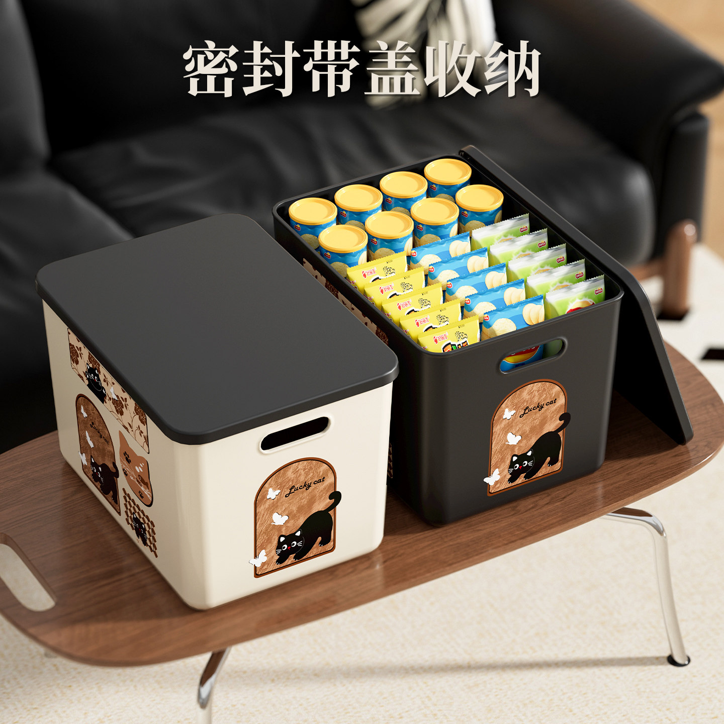 收纳箱中古风家用加厚客厅杂物零食玩具整理宿舍带盖大容量储物箱