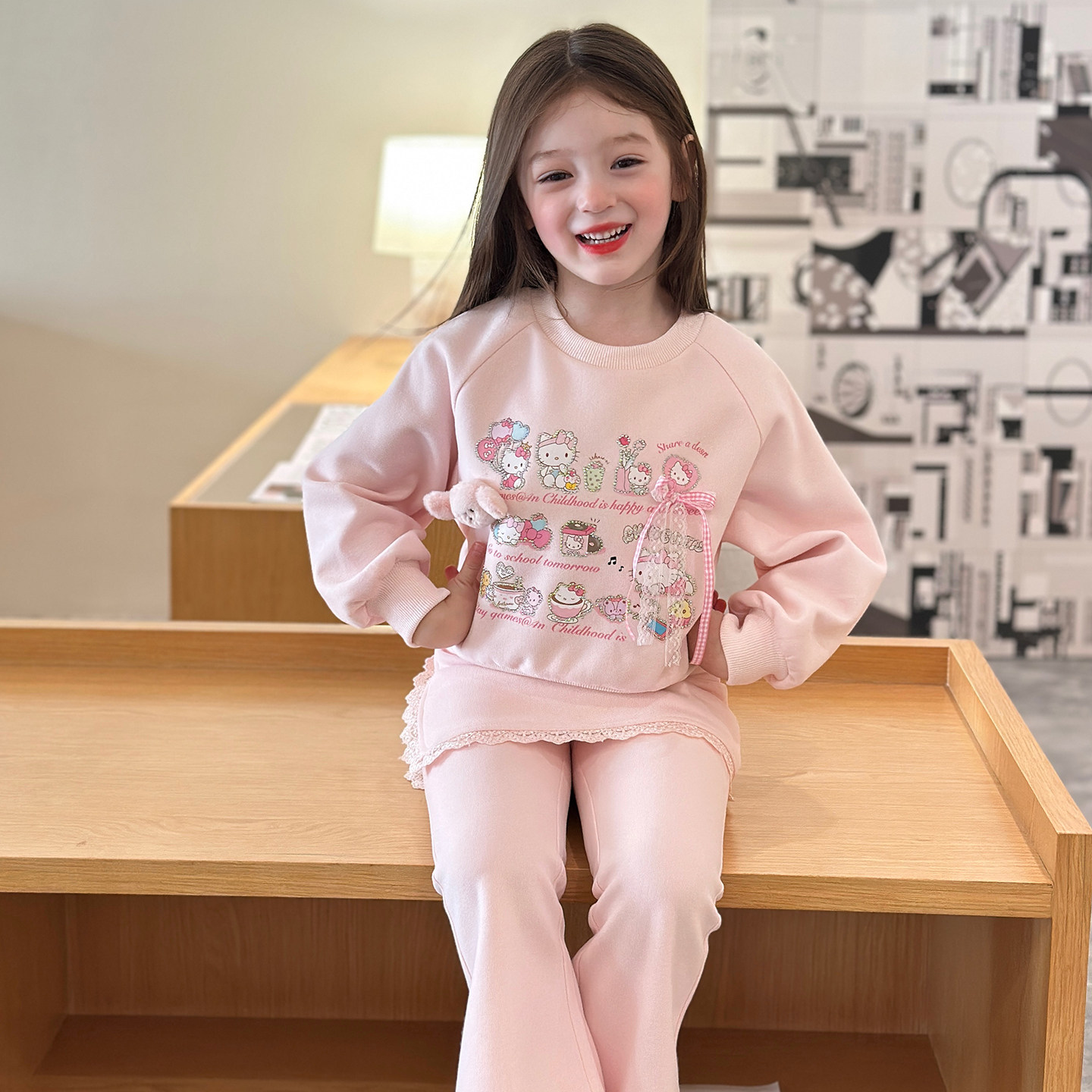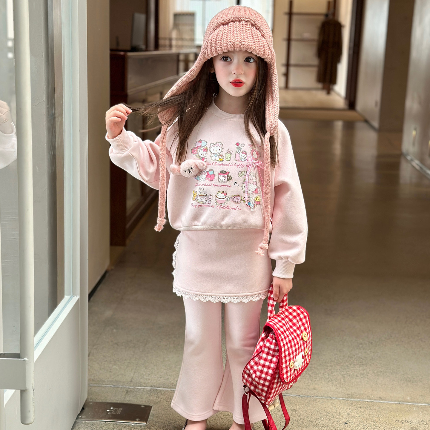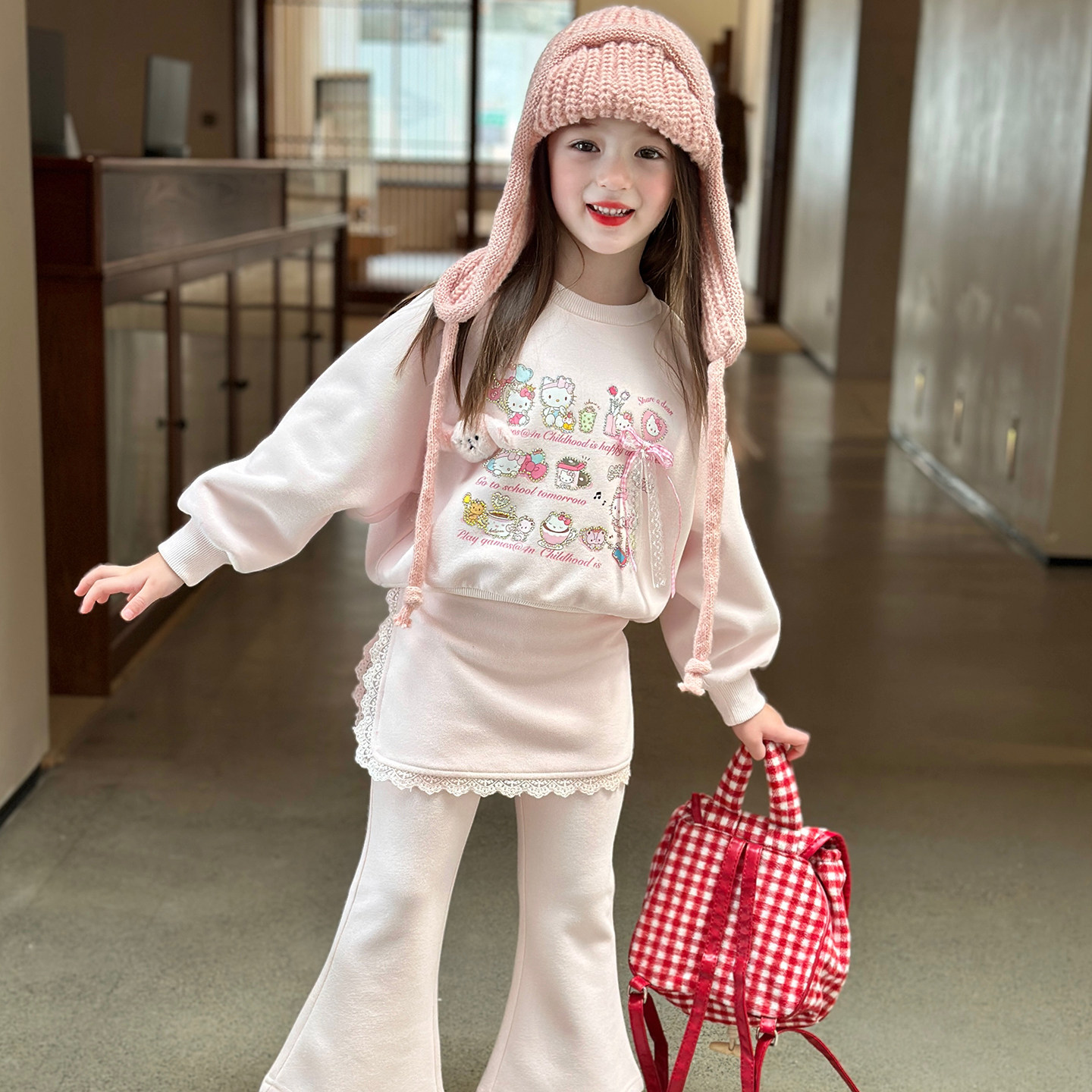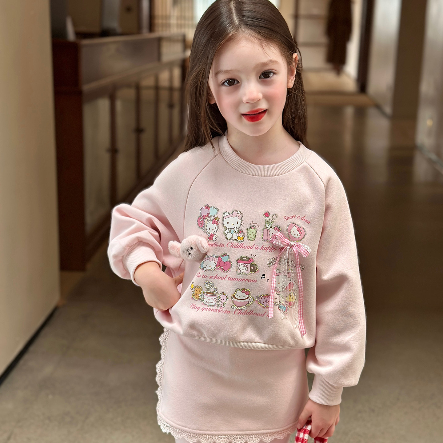 栀了成长记女童卫衣裤裙加绒套装春装儿童甜美卡通公主风两件套