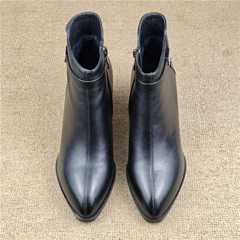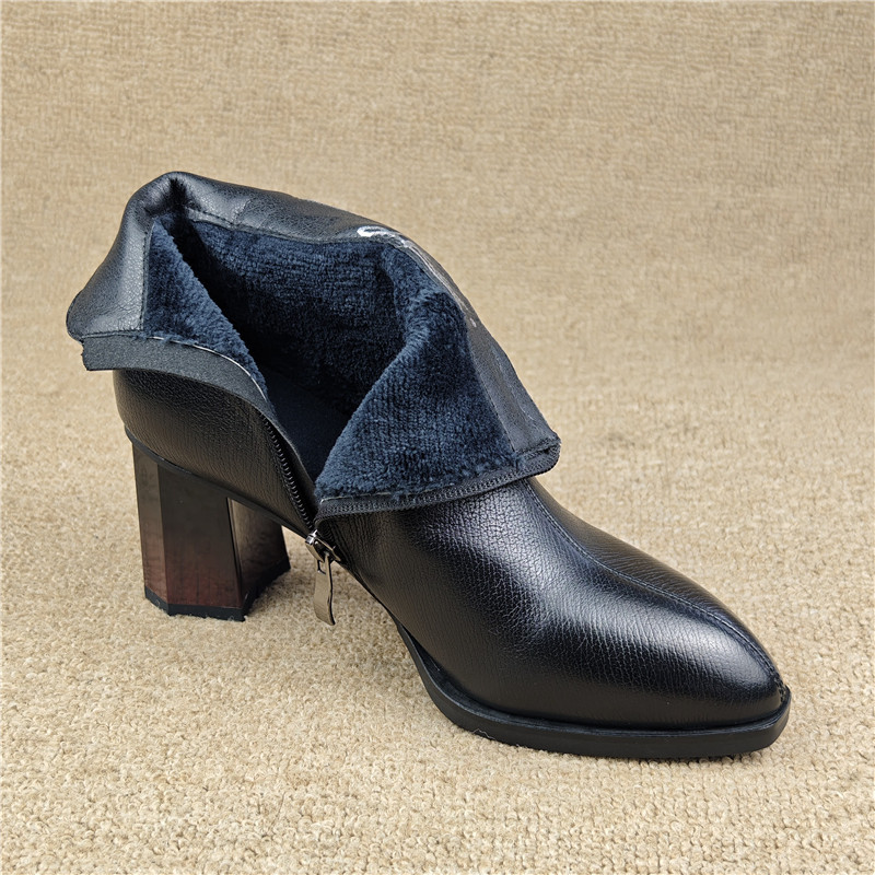 撤柜断码处理女靴子真皮女鞋头层牛皮加绒棉靴侧拉链高跟时装短靴