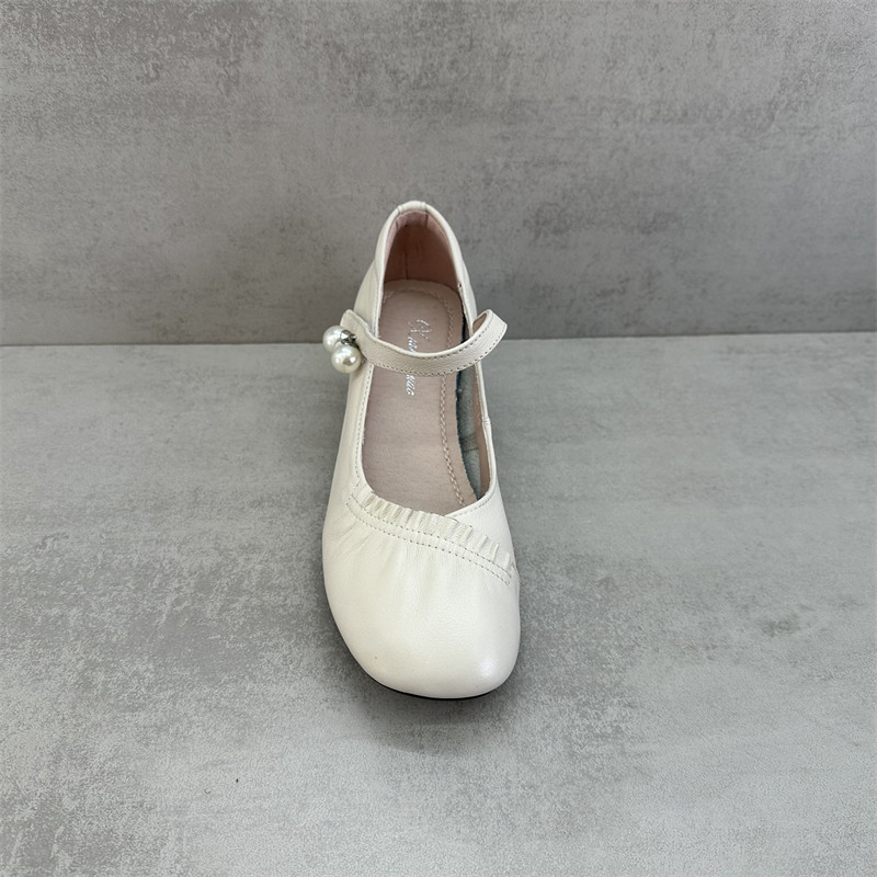 撤柜处理断码女鞋2026春款真皮褶皱方头浅口单鞋魔术贴平跟妈妈鞋
