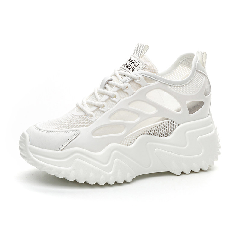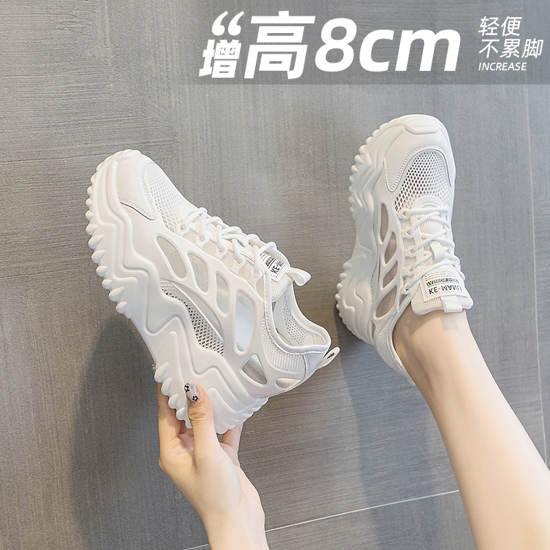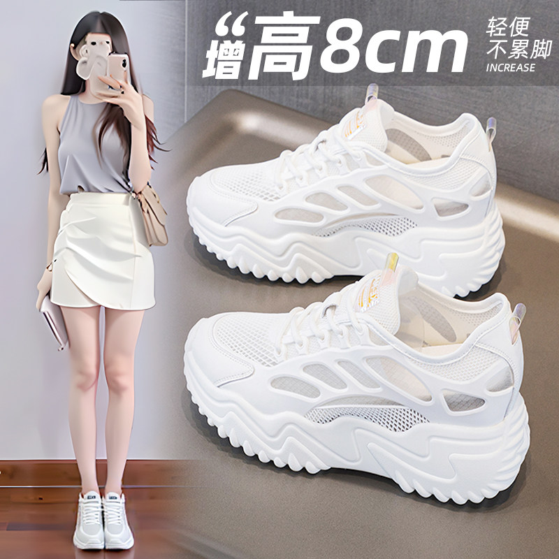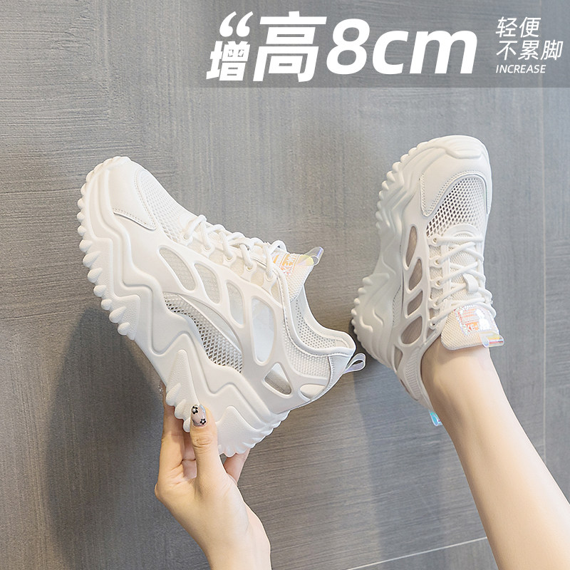 内增高小白鞋女8cm夏季小个子厚底运动透气凉鞋网面透气老爹轻便