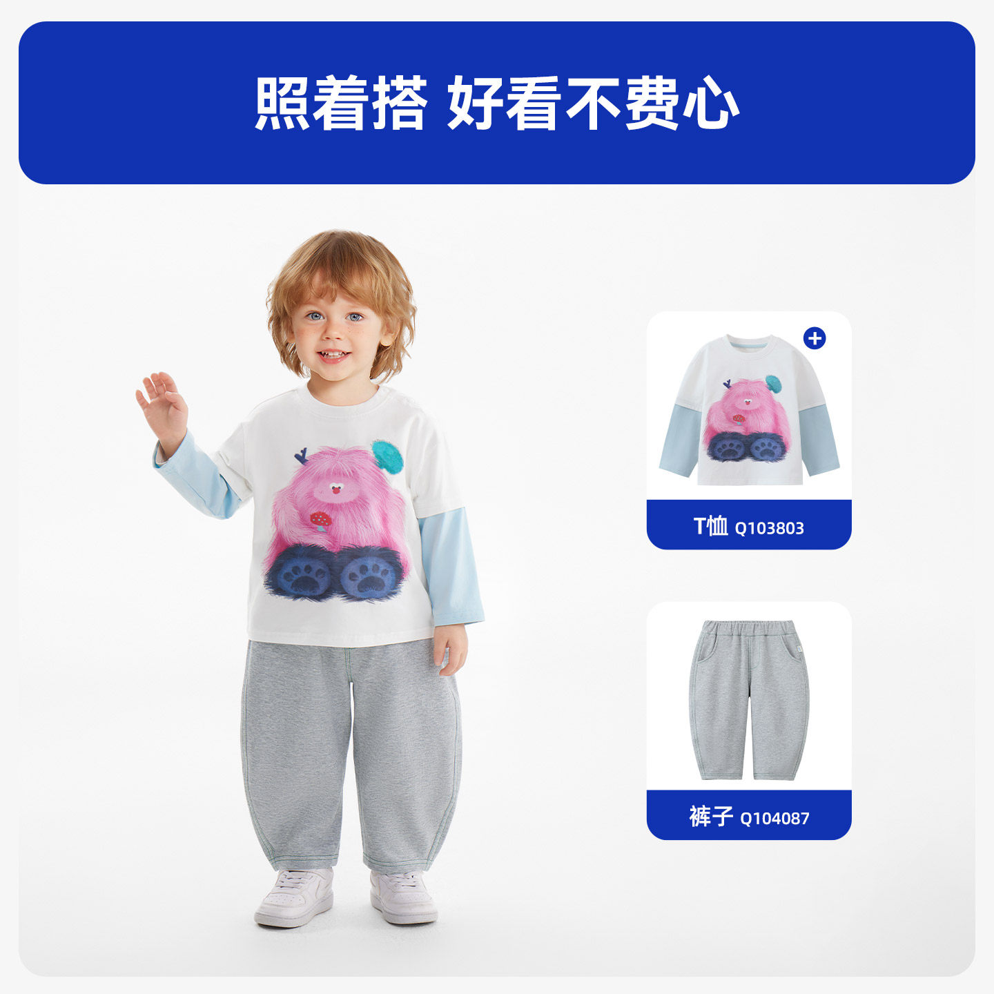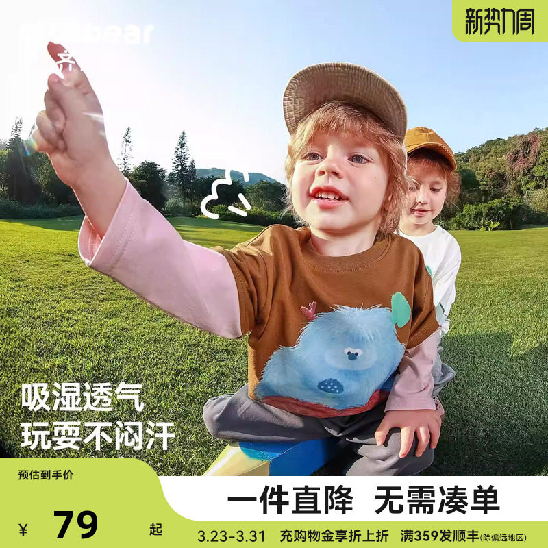 [小魔怪2.0][10A抗菌]齐齐熊宝宝t恤长袖春装男童假两件儿童上衣