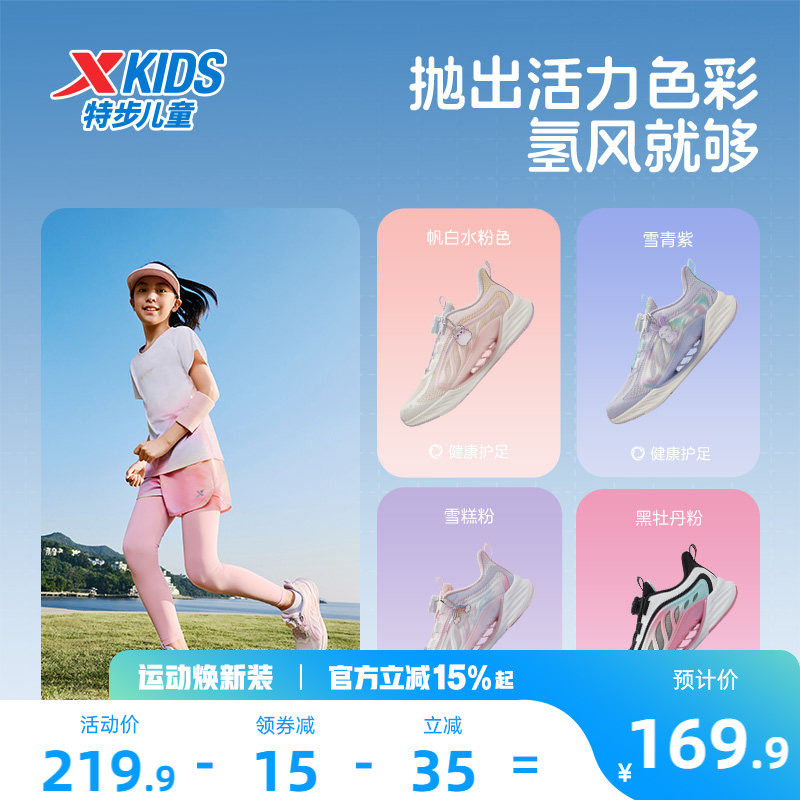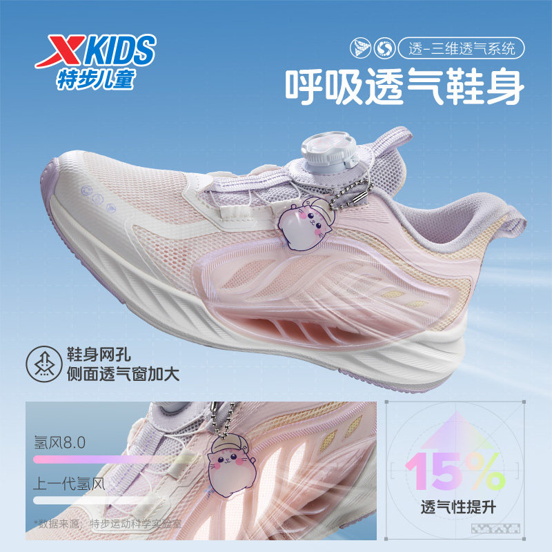 【氢风8.0护足跑鞋】特步儿童运动鞋女童跑步鞋旋转纽扣透气童鞋