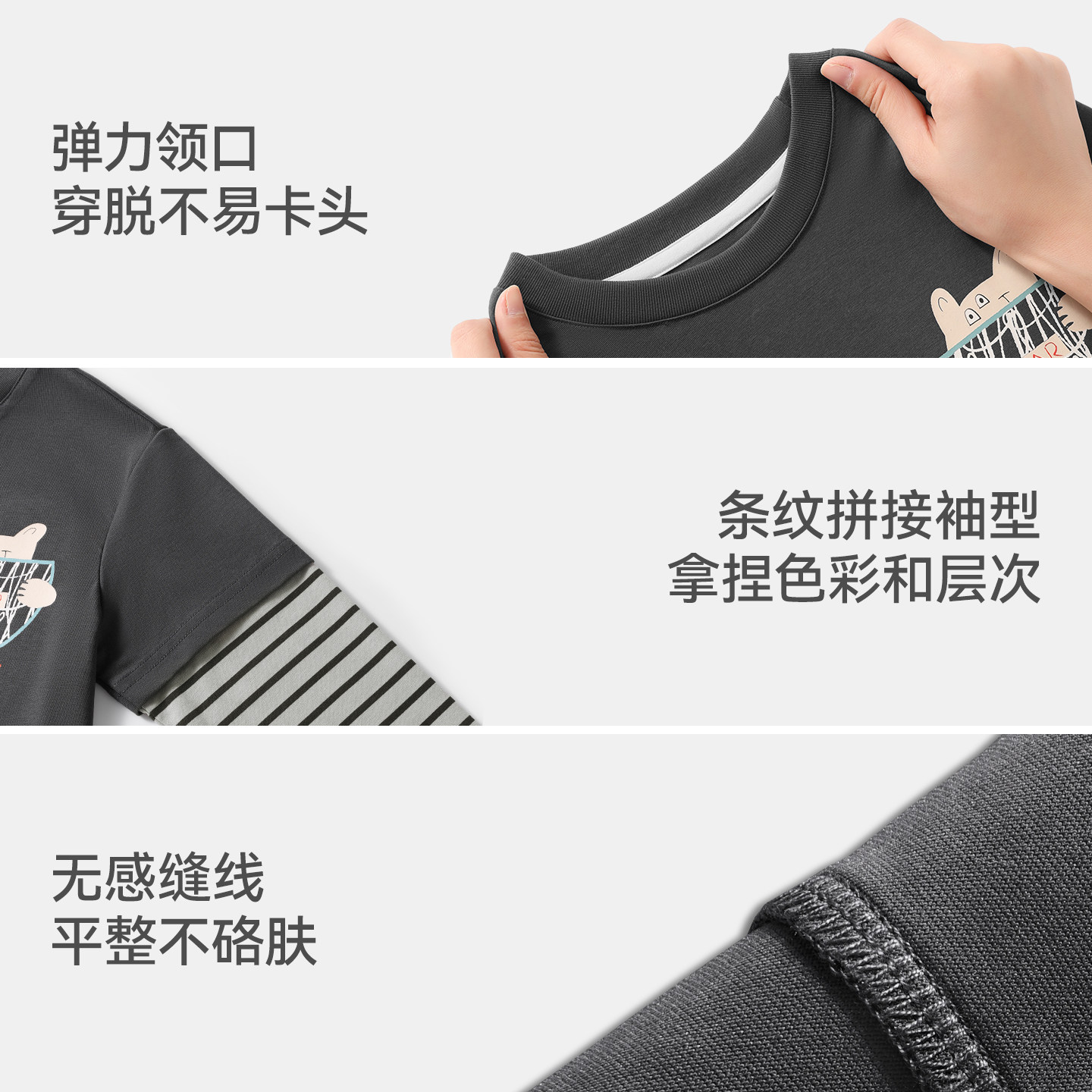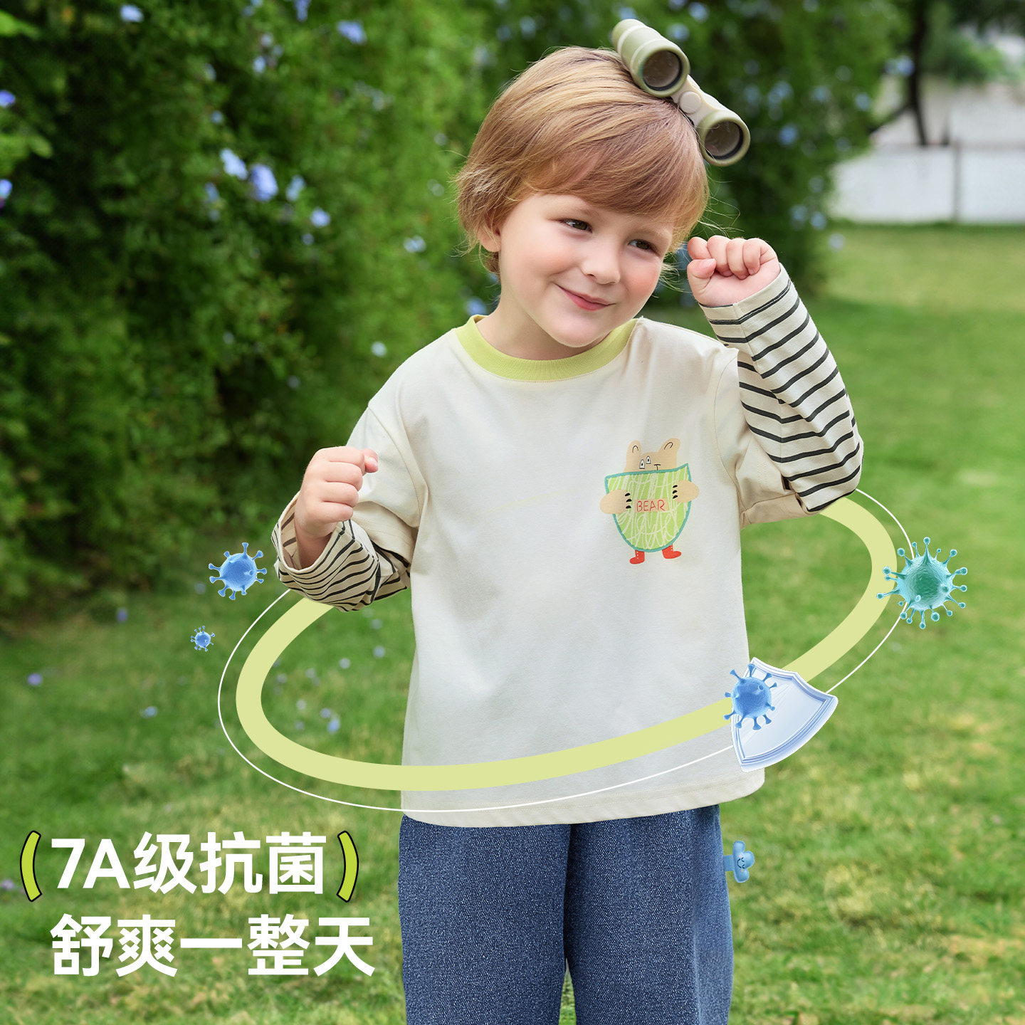 贝肽斯[7A抗菌]儿童长袖t恤新款宝宝春装男女童装假两件圆领上衣