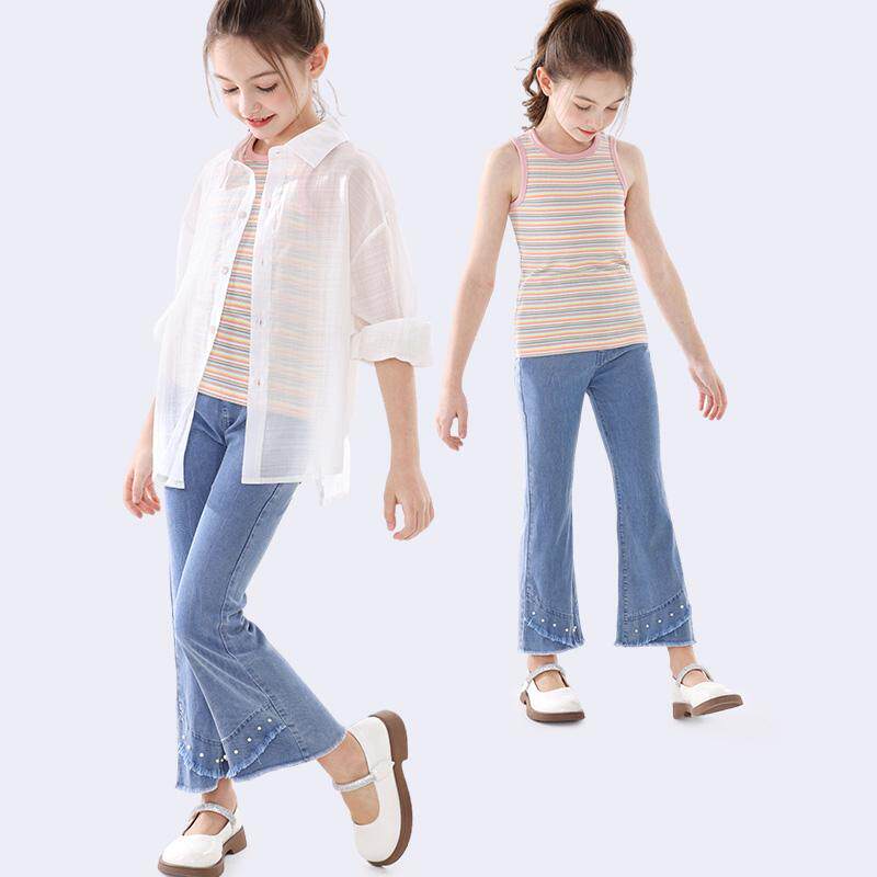 女童裤子春夏新款儿童牛仔休闲裤薄款中大童薄喇叭裤洋气春装童装