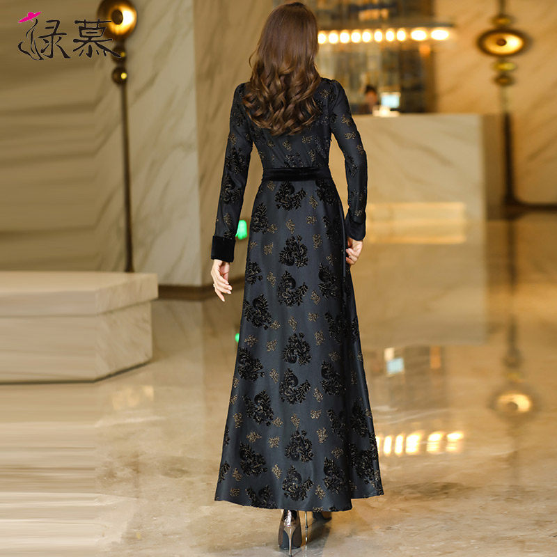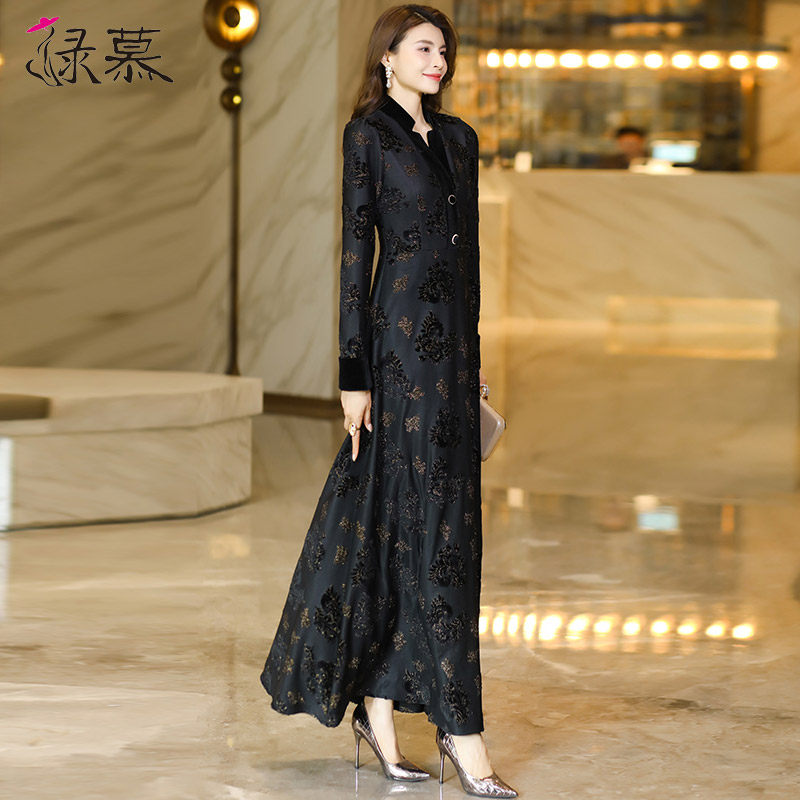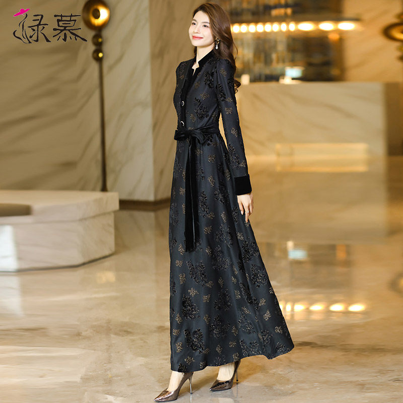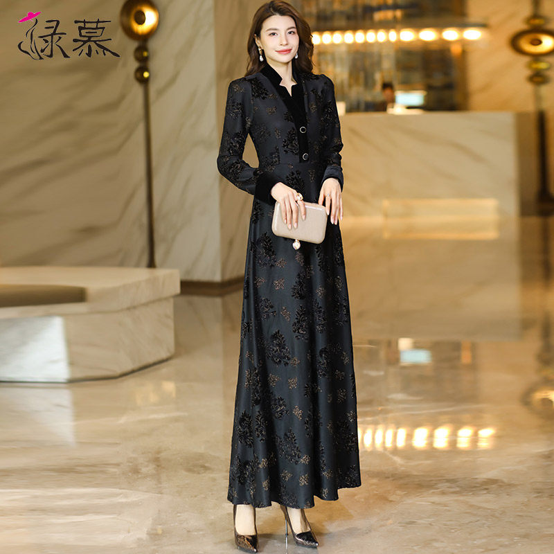 2026春春秋新款垂坠感加绒加厚连衣裙长袖收腰高级感中老年长裙