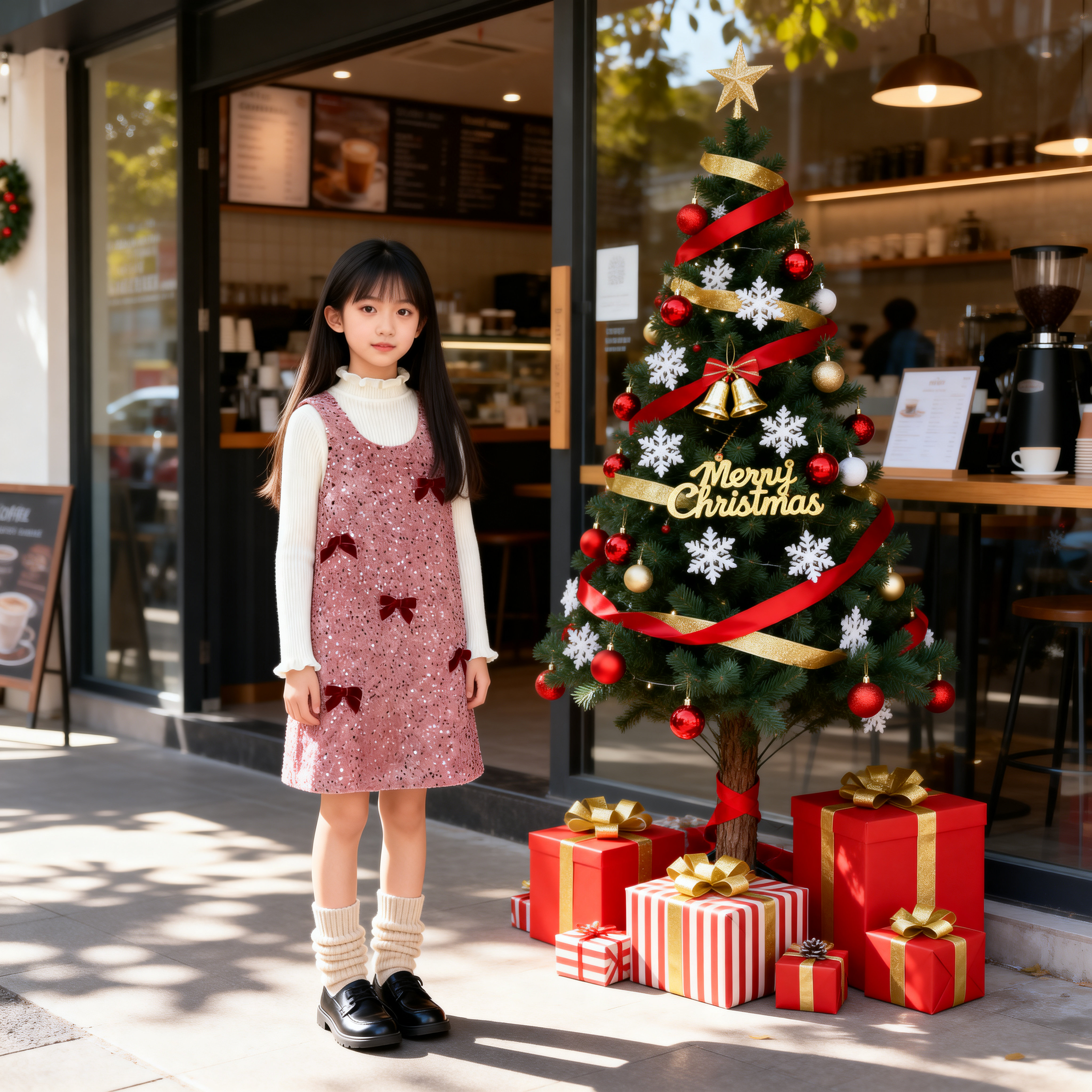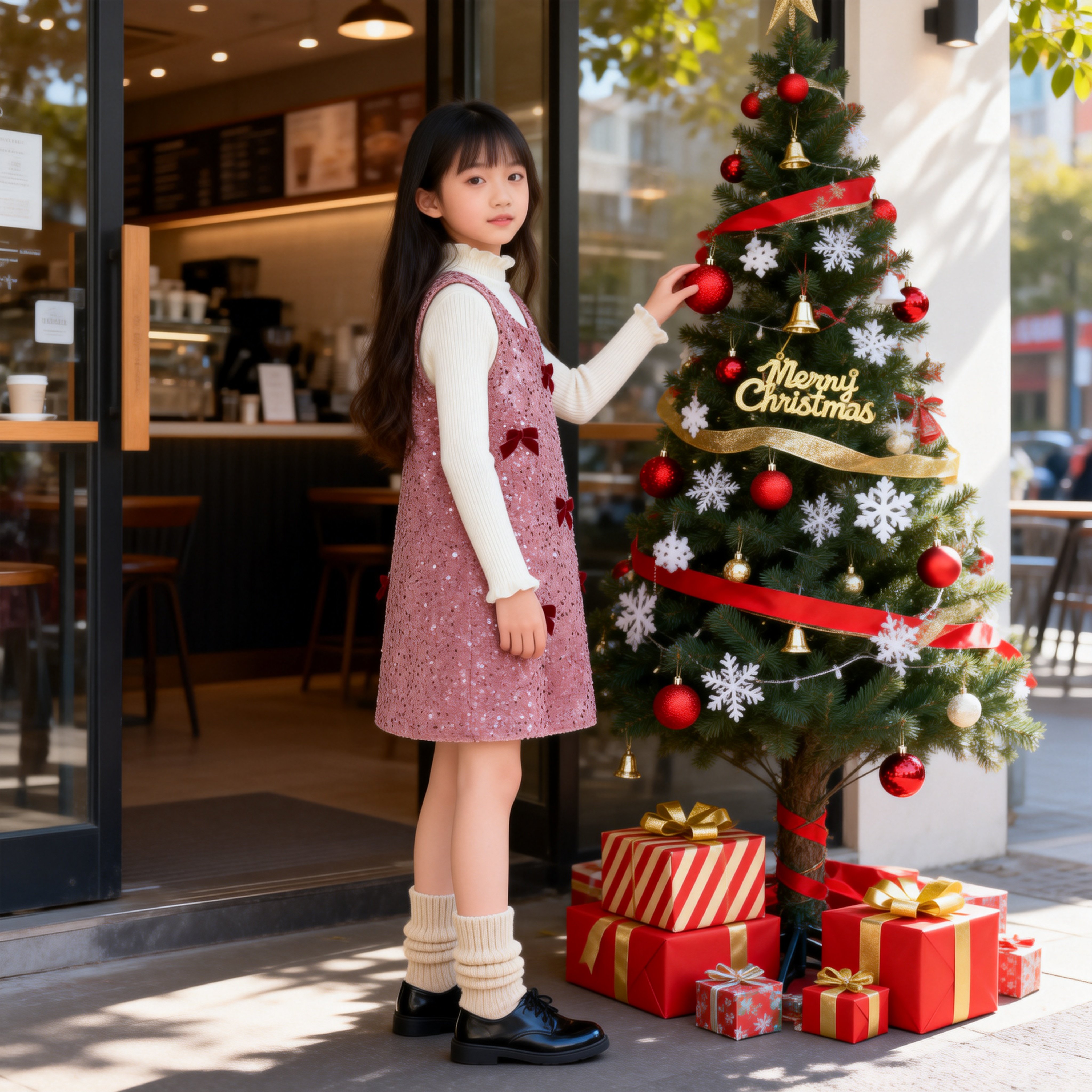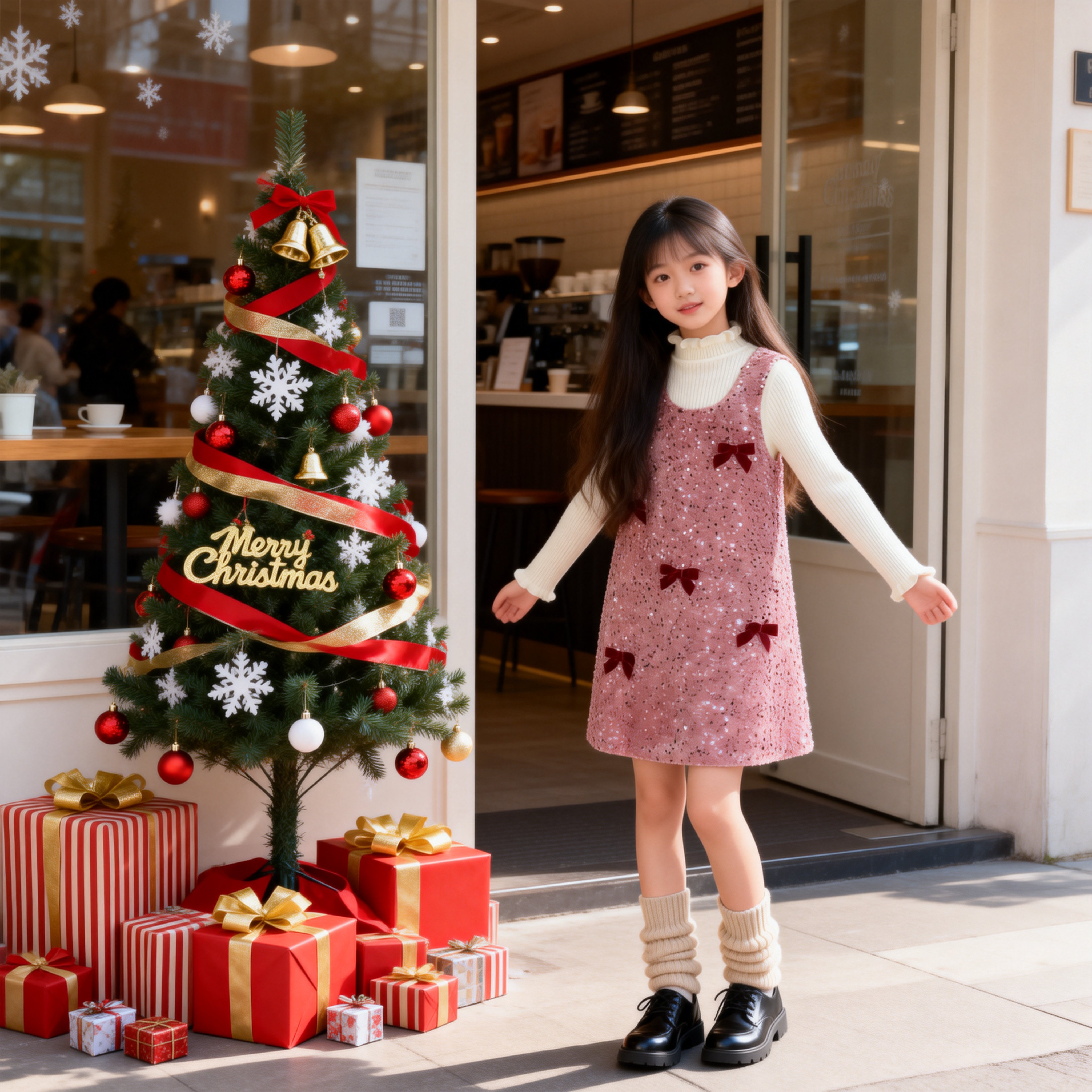 女童2026粉色夹棉背心年服裙套装新款加厚连衣裙毛衣打底衫两件套