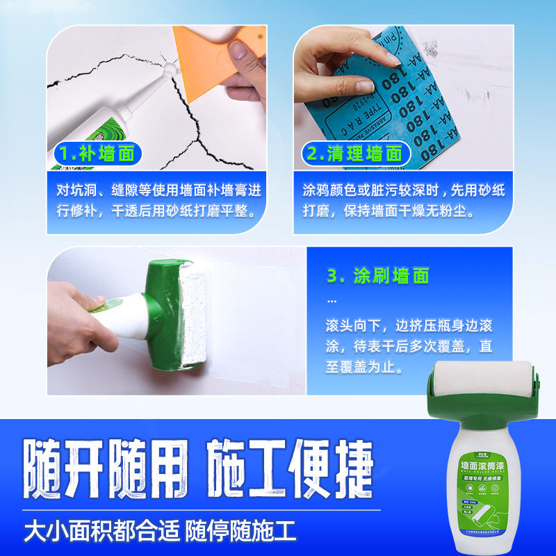 滚筒漆墙面修补手持大滚桶乳胶漆白色墙面修复补墙膏翻新自刷神器