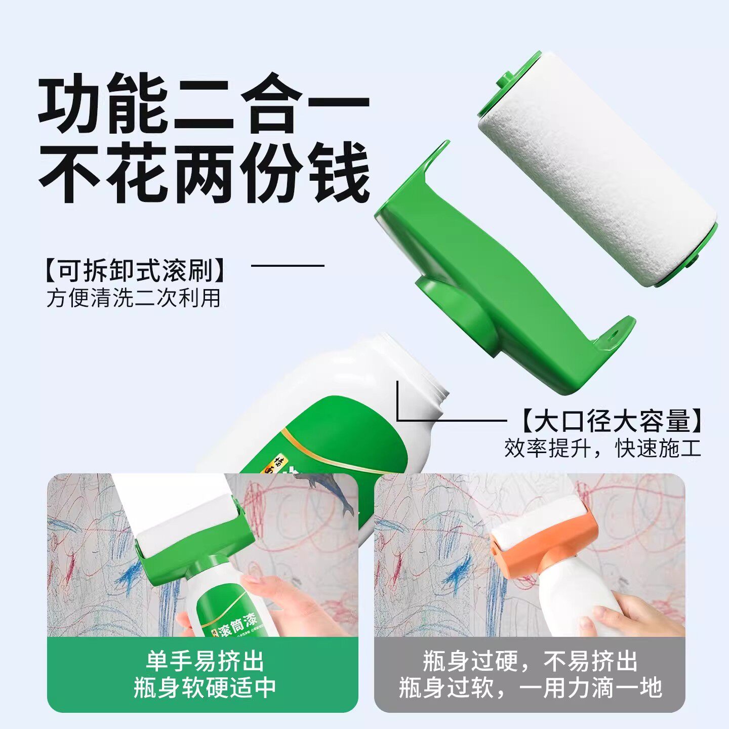 滚筒漆墙面修补漆自喷漆白色小滚漆家用内墙乳胶漆自刷滚刷漆刷涂