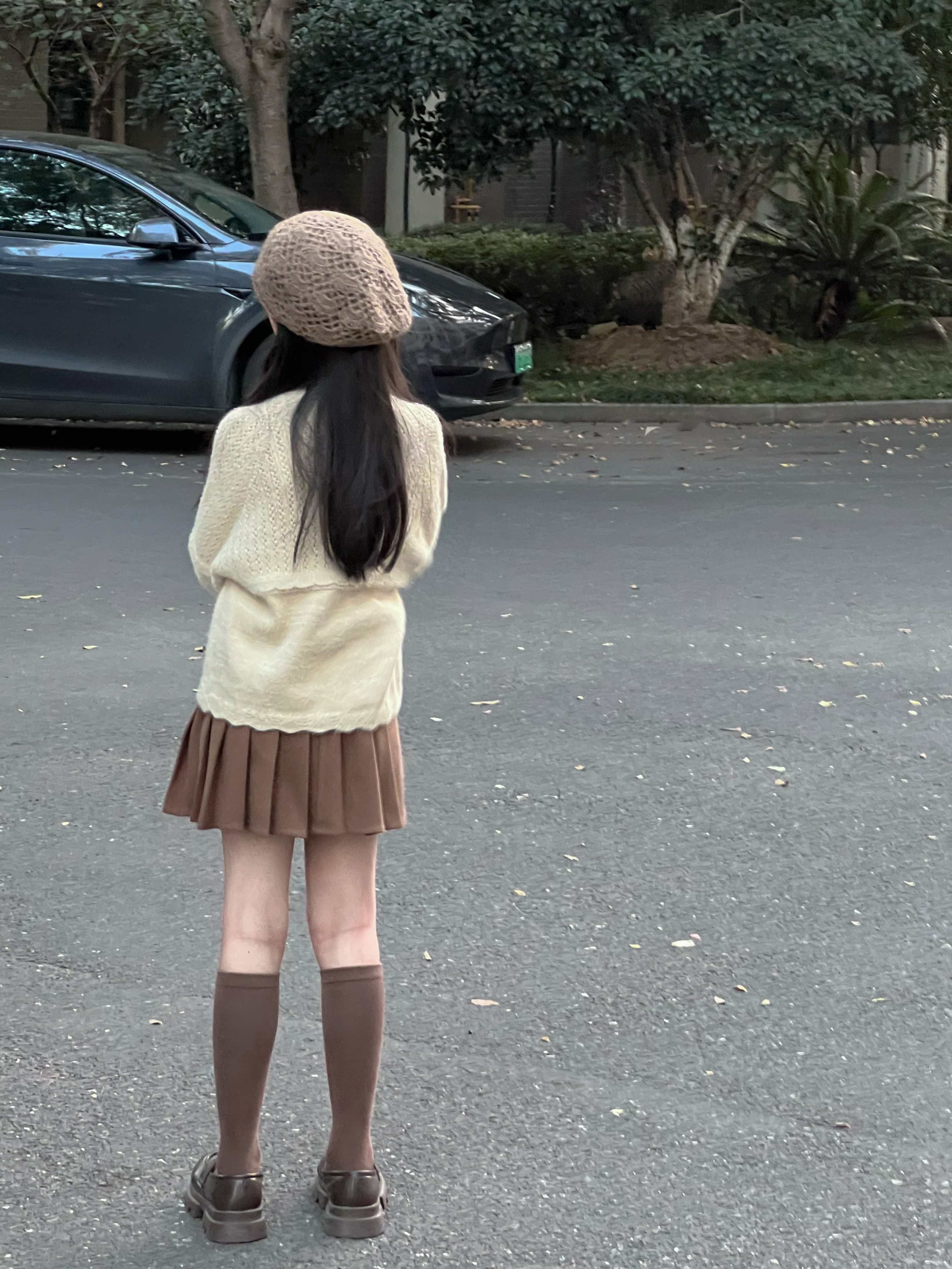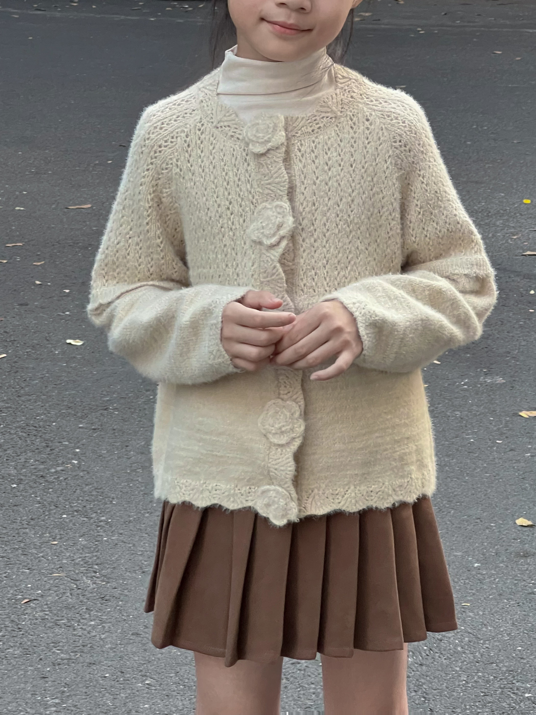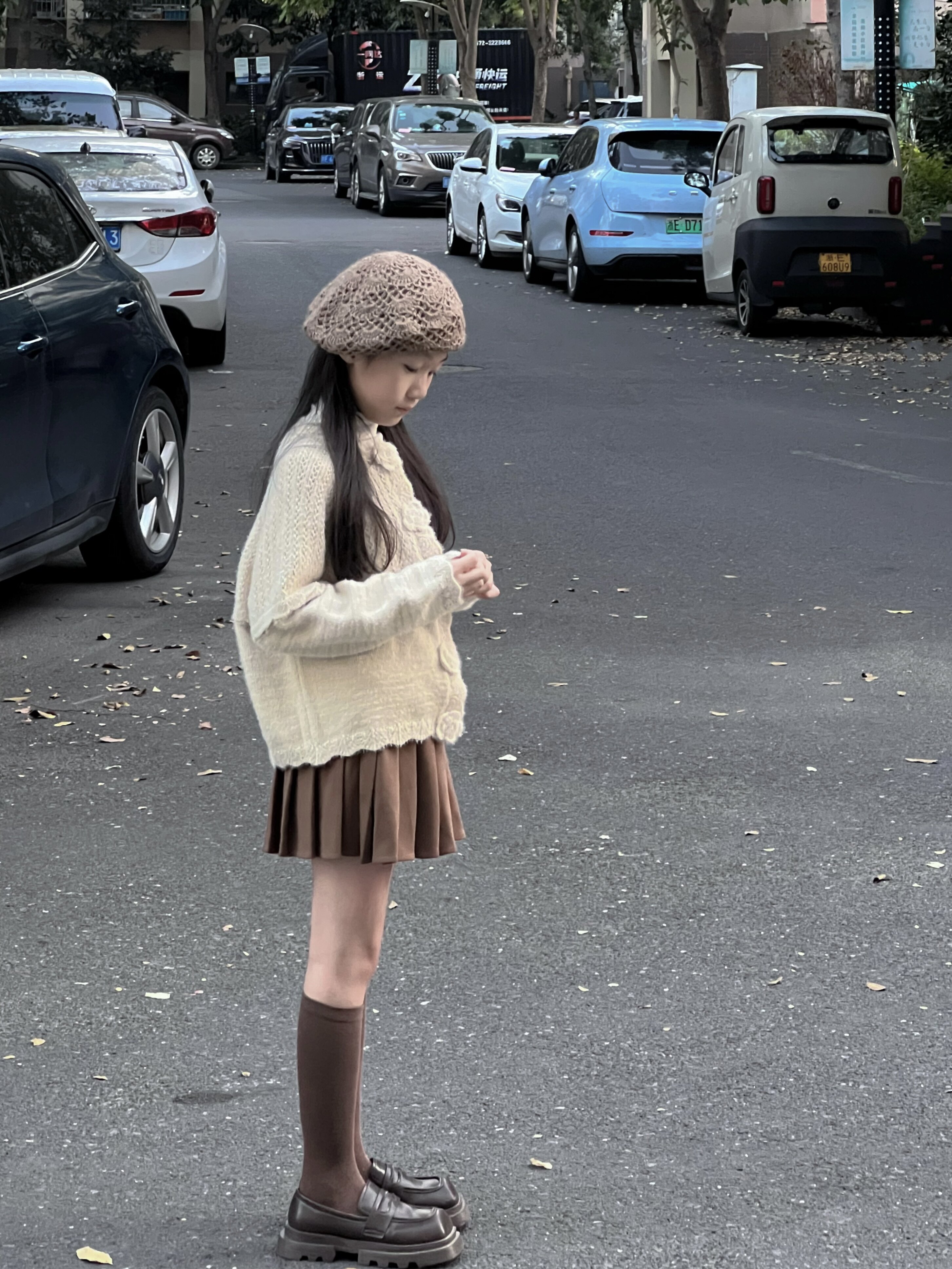 吉小可2025秋冬新款女童针织开衫中大童毛衣外套百褶裙套装