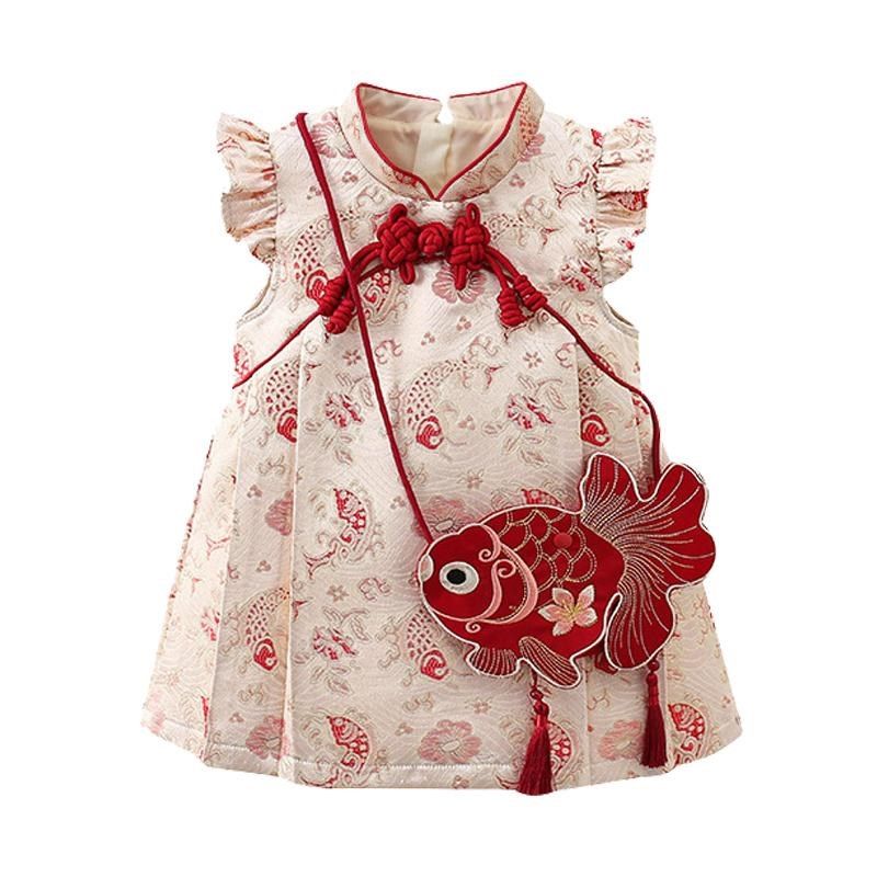 女童连衣裙宝宝新年服装衣服儿童裙子过年服小公主洋气拜年服薄款