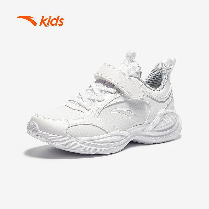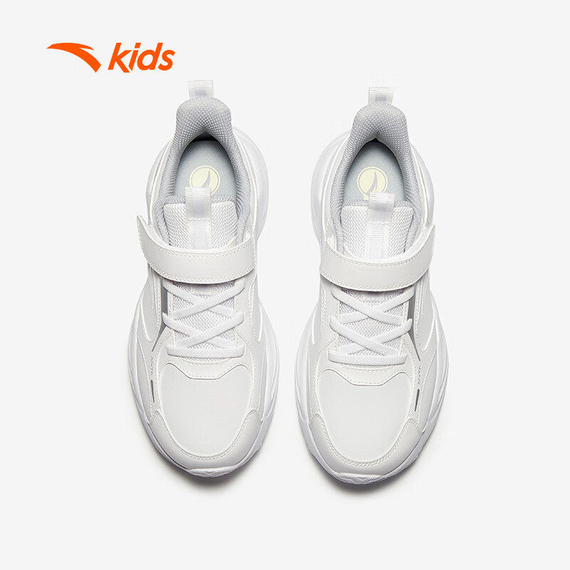 安踏童鞋男童白色跑步鞋春季新款革面运动鞋大童魔术贴校园休闲鞋