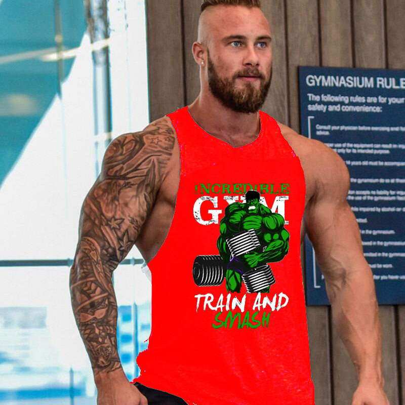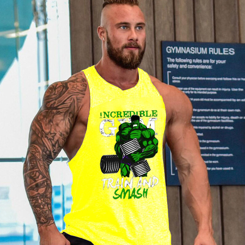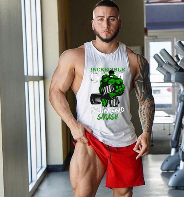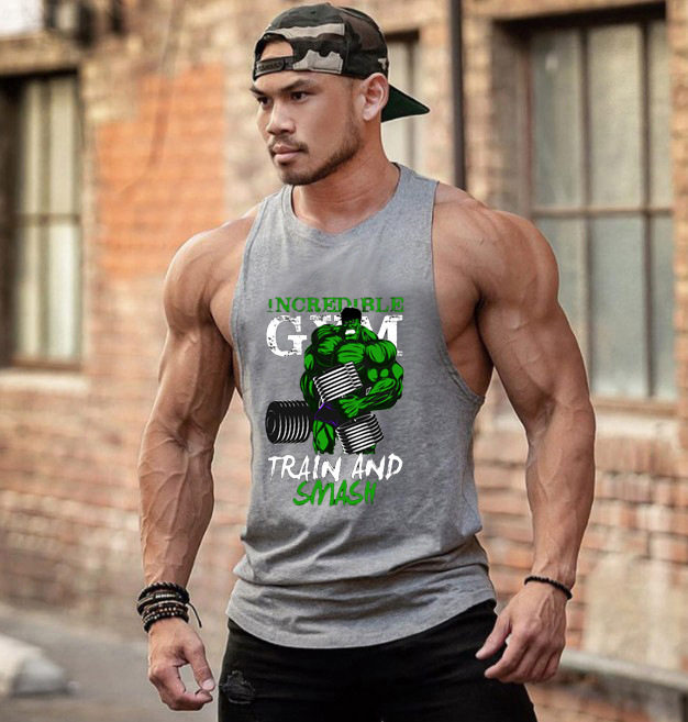 大码背心健美服装健身房小圆领运动训练深挖宽松肌肉棉背男式夏