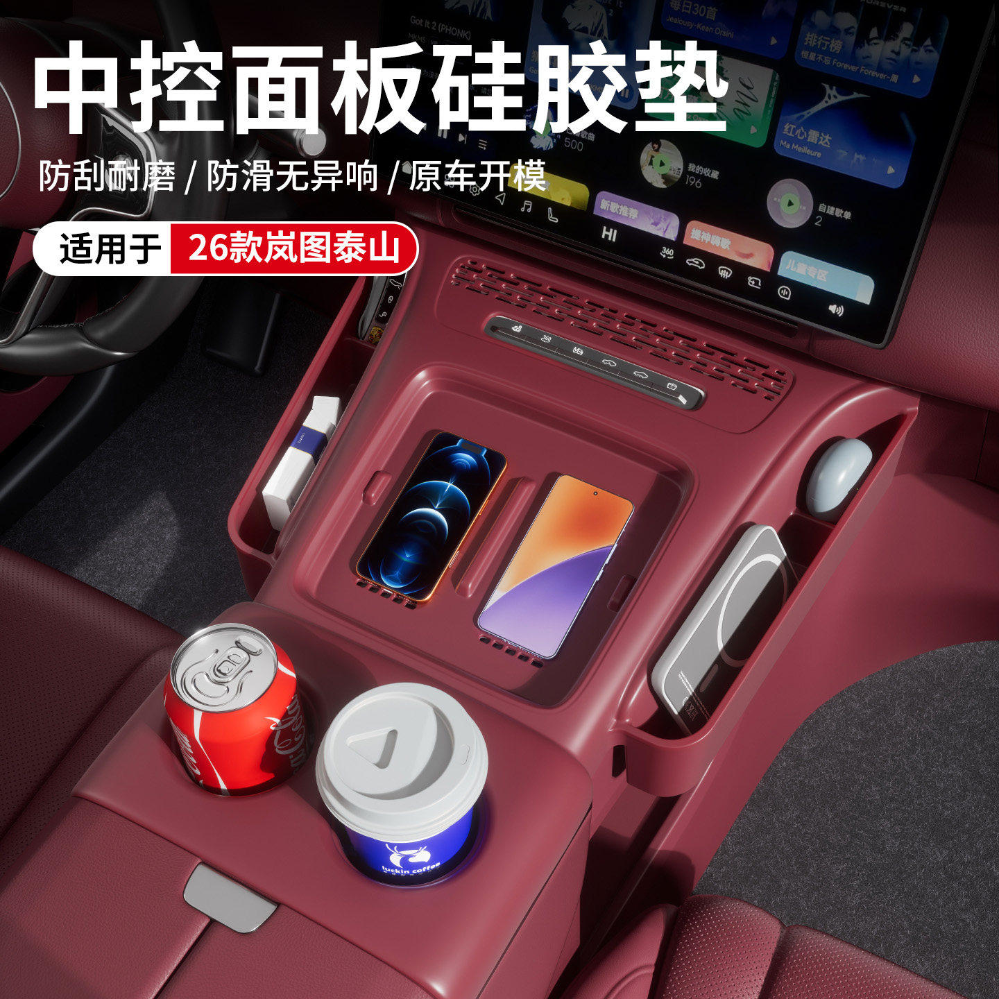 适用岚图泰山中控无线充硅胶垫防护收纳盒防滑汽车内装饰用品配件