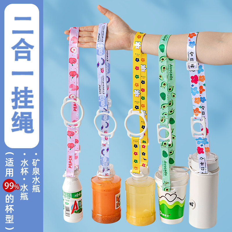 水杯挂绳矿泉水瓶二合一饮料壶出门背带神器斜跨套便携式保温装子