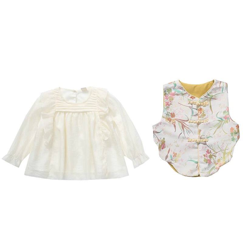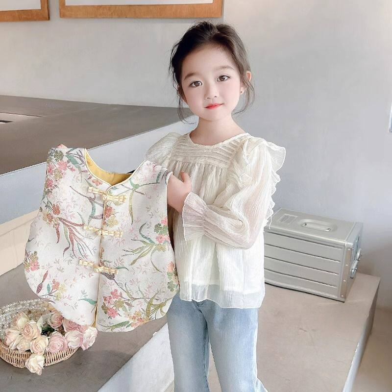 女童马甲套装春秋2025新款儿童洋气中国风春季宝宝衬衫春装时髦