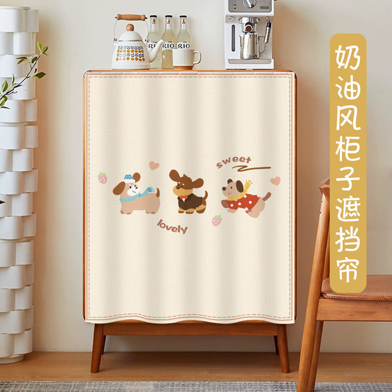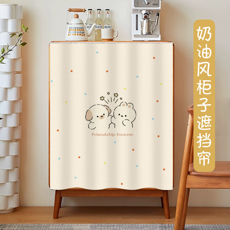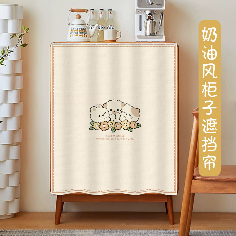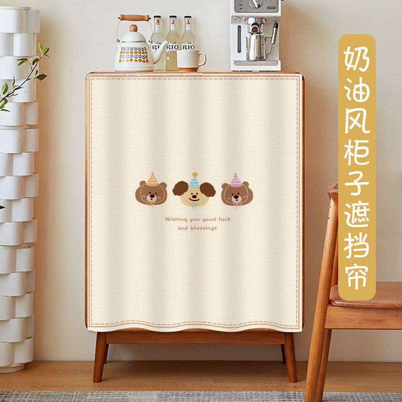柜子遮挡帘滑轨儿童房书柜帘防尘帘卡通遮丑帘杂物布帘免打孔定制