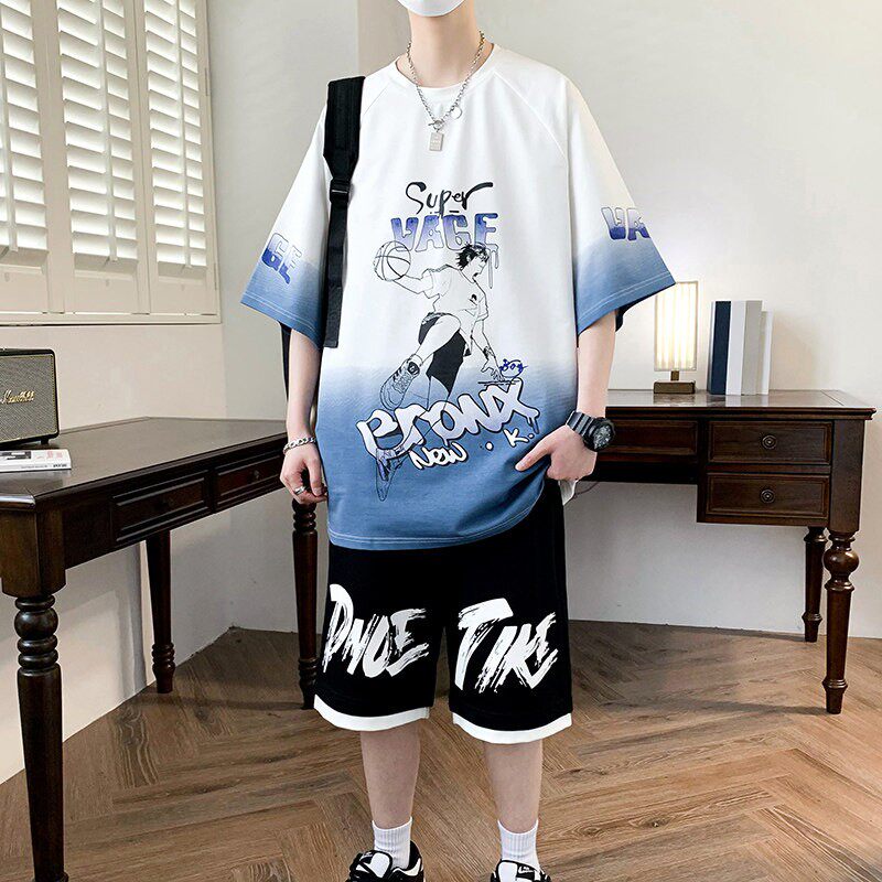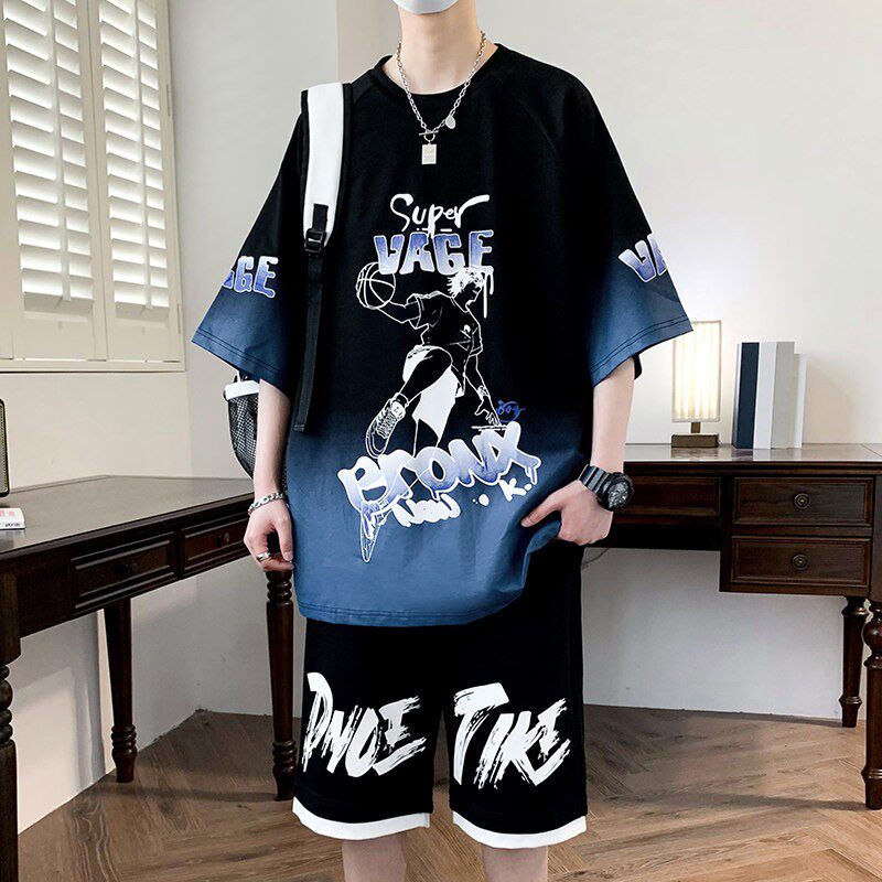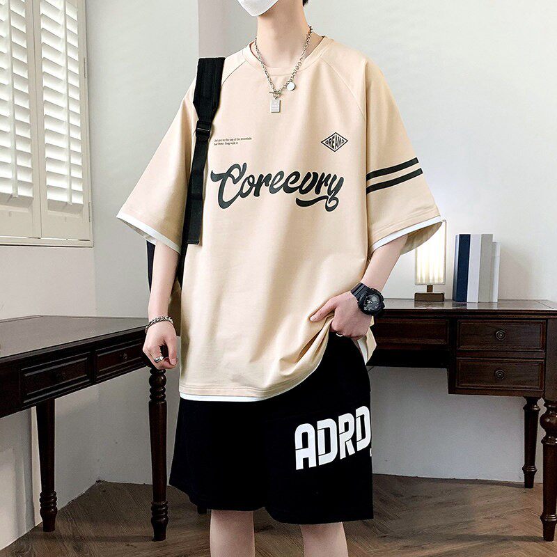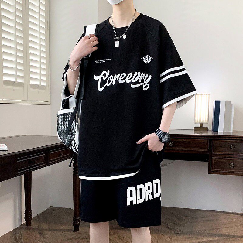 夏季纯棉青少年短袖t恤男2026新款高中初中学生潮流帅气运动套装