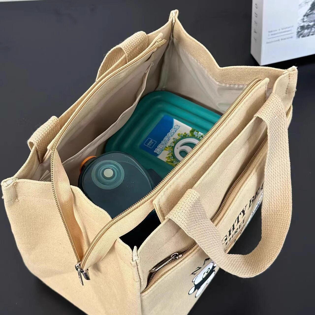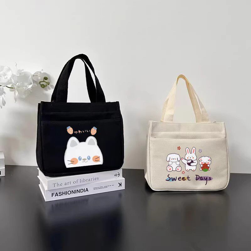 2025新款出门上班族杂物小拎包拉链洋气网红盒饭手提袋帆布女通勤