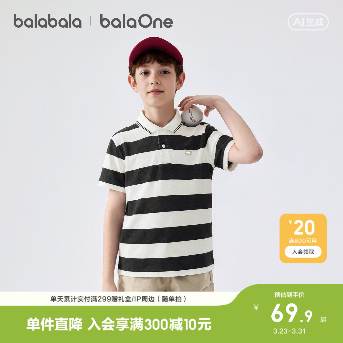 巴拉巴拉童装男童短袖t恤儿童2026夏季新款POLO衫条纹舒适上衣潮
