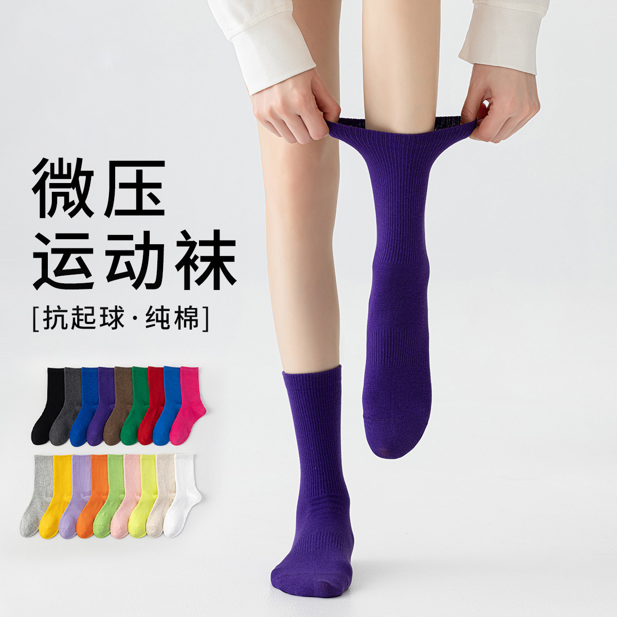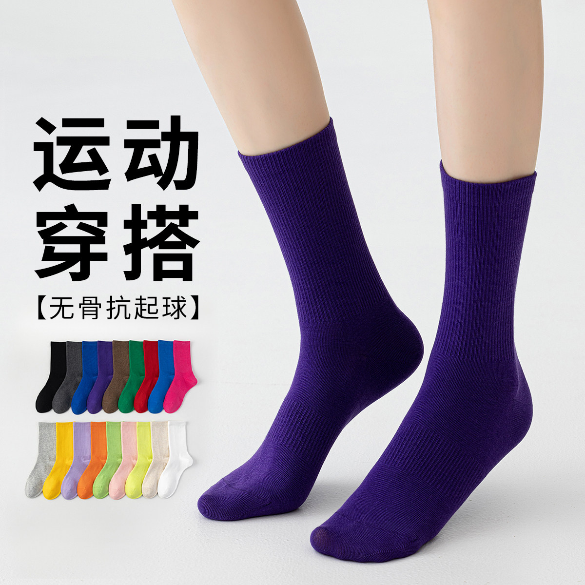 袜子女长筒运动袜瑜伽骑行舞蹈外穿潮袜春秋纯棉无骨薄款配鲨鱼裤