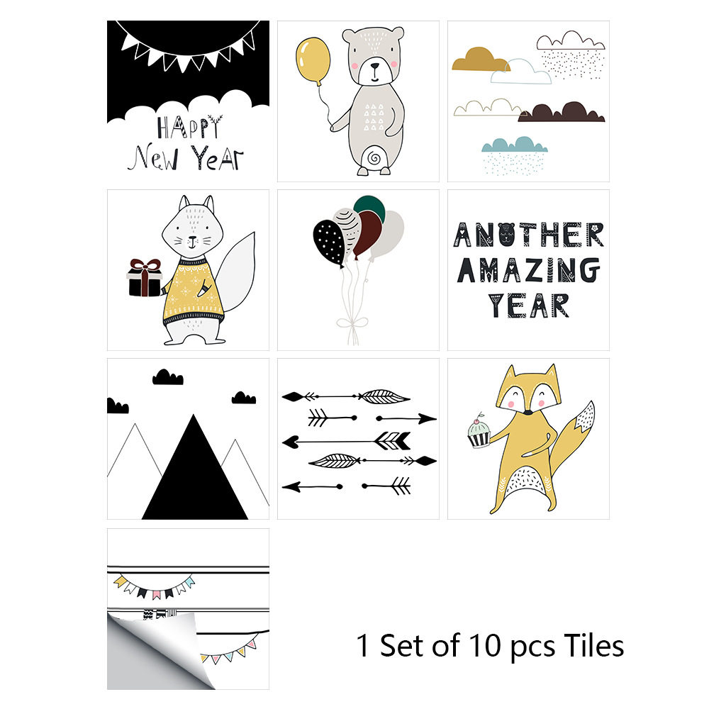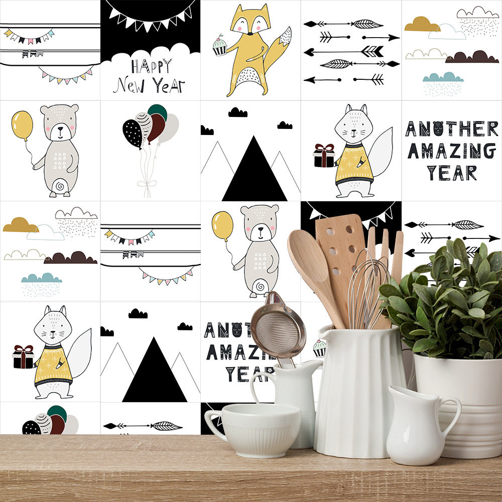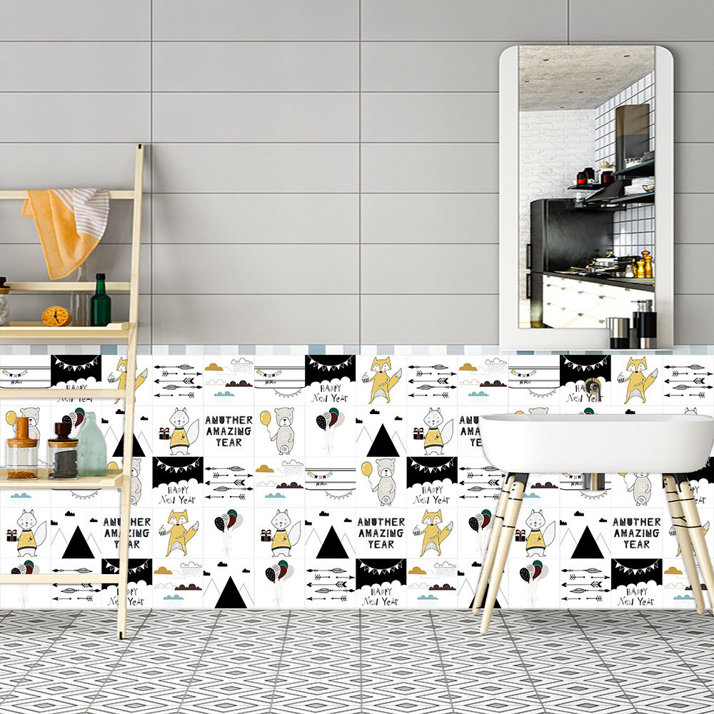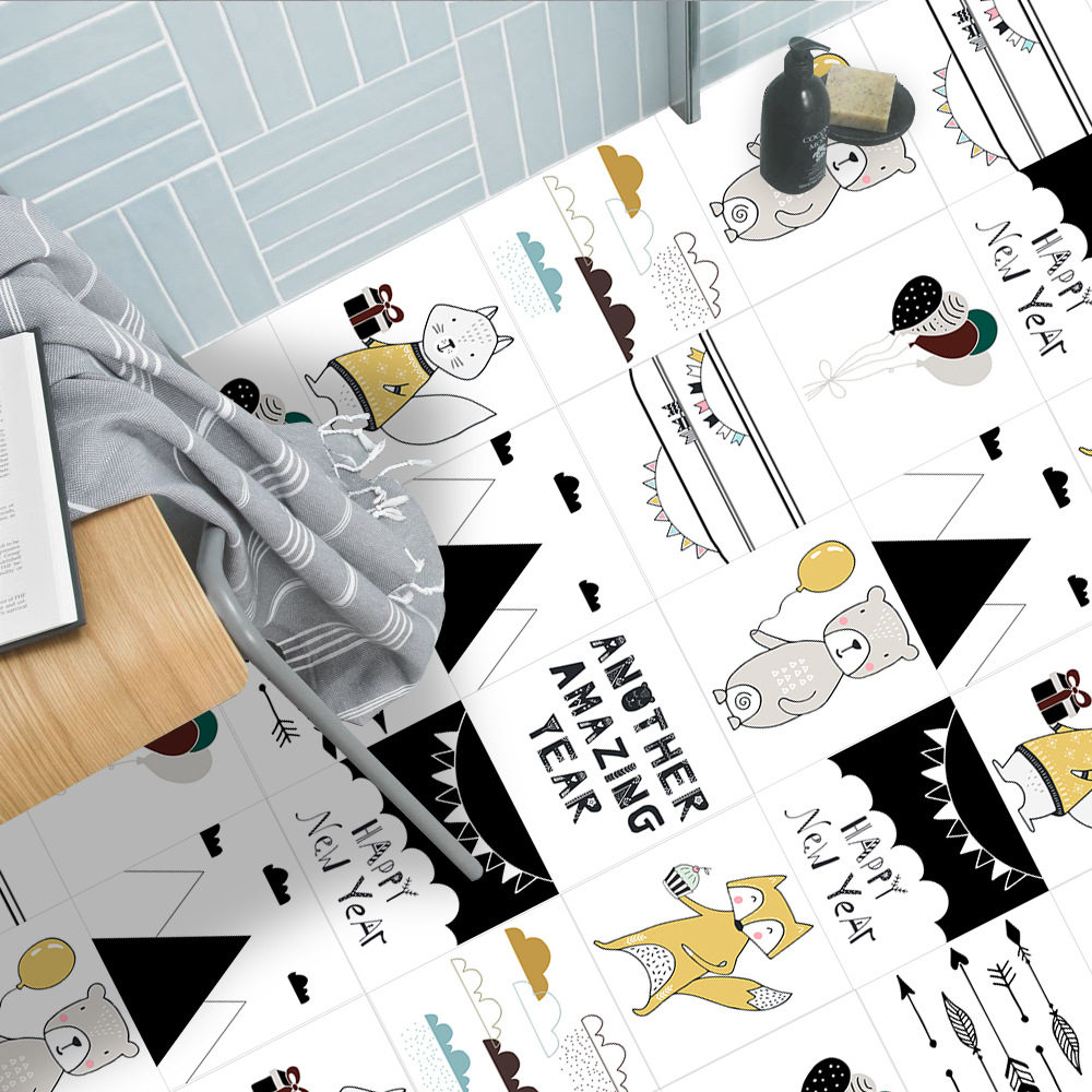 黑白狐狸灰熊瓷砖贴地板楼梯公寓厨房浴室墙面防水装饰自粘墙贴纸