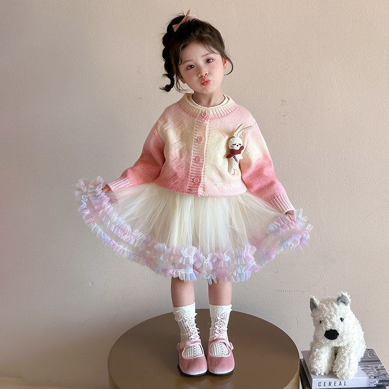 女童春秋款兔子裙子春装2026新款儿童春季连衣裙套装女宝宝公主裙