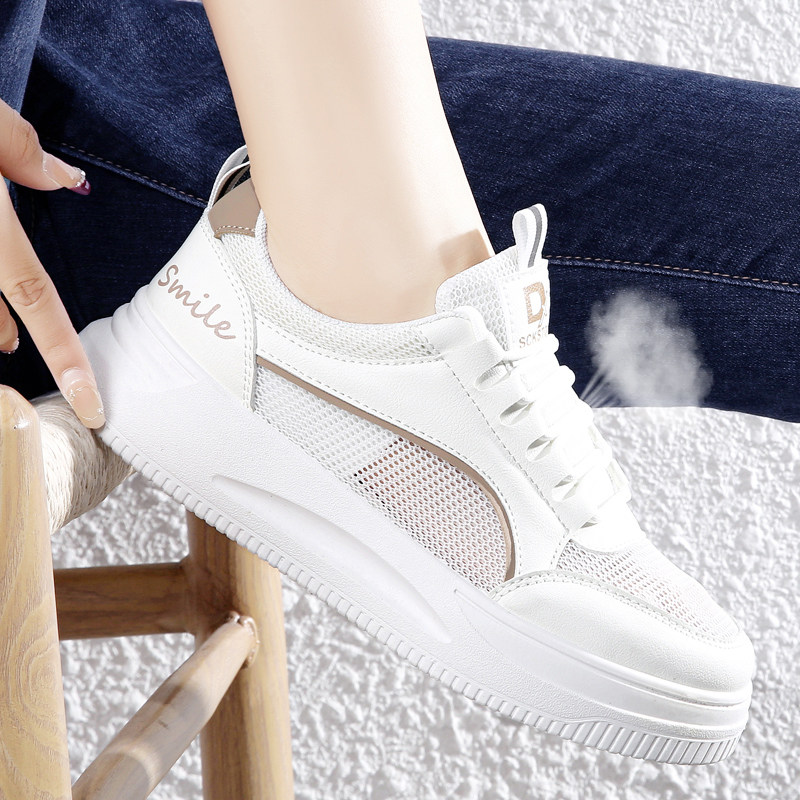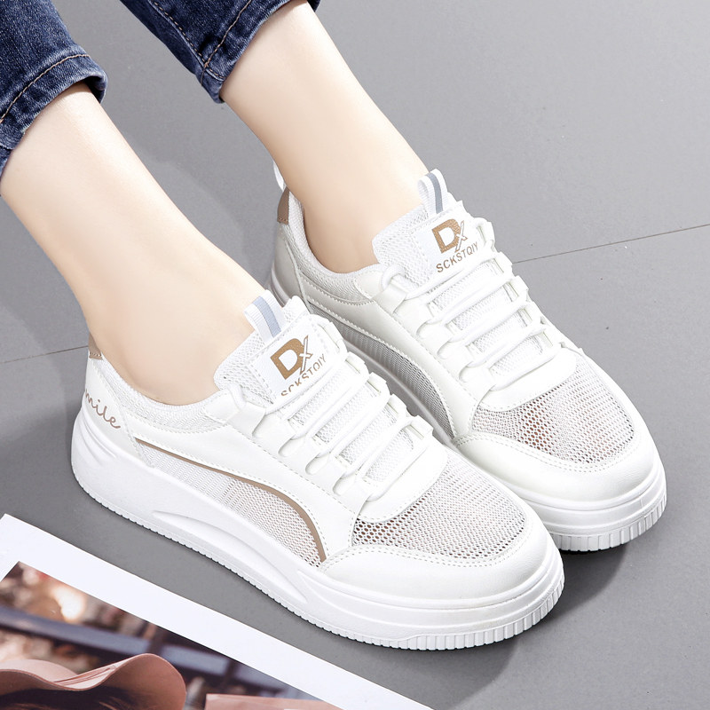 41一43大码小白鞋女款2025新款防滑软底初中生板鞋网面休闲运动鞋