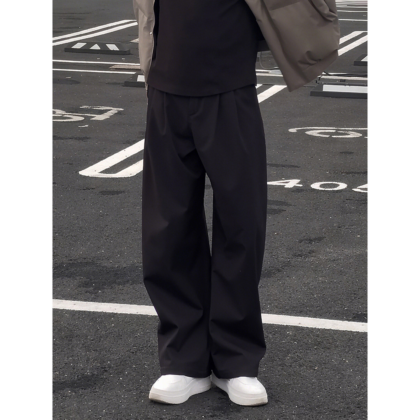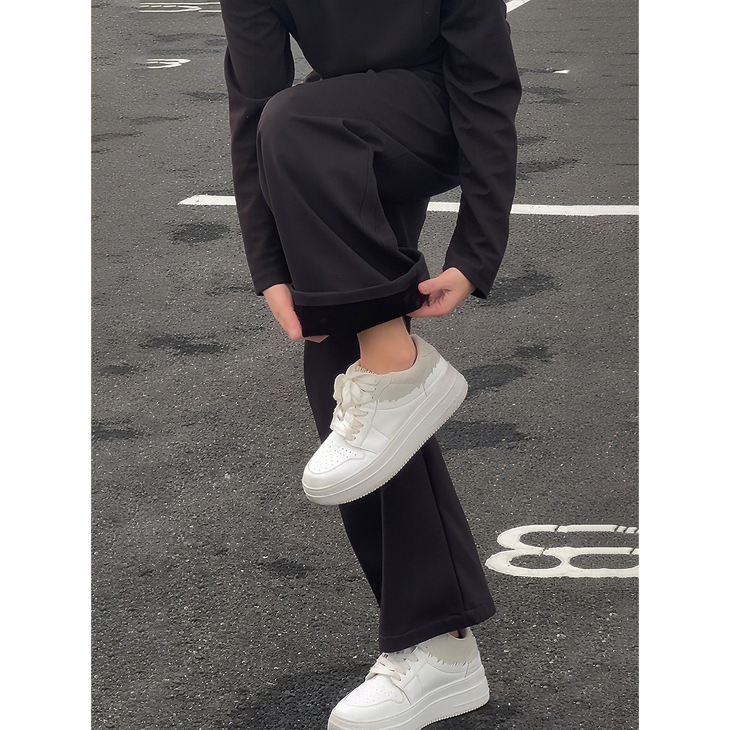 黑色弯刀加绒加厚西裤男款春季痞帅高级感裤子直筒垂感阔腿微喇裤