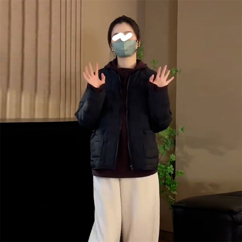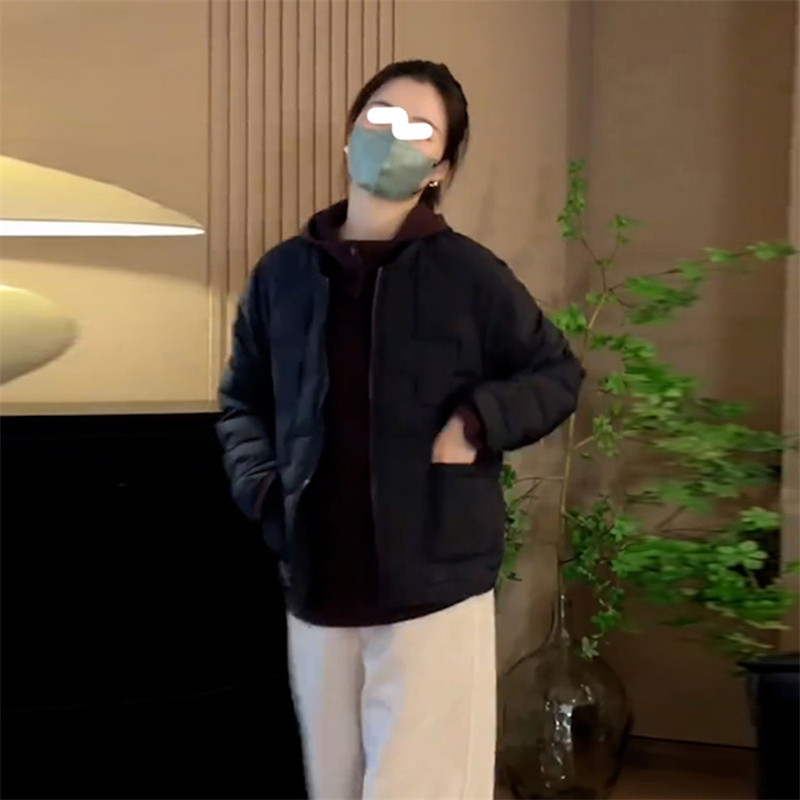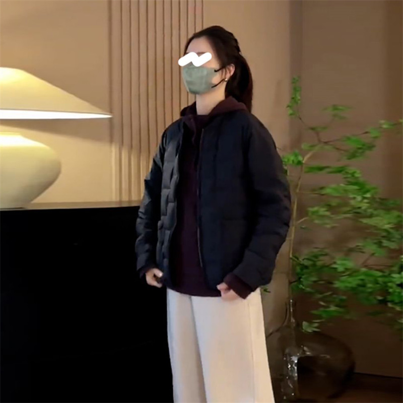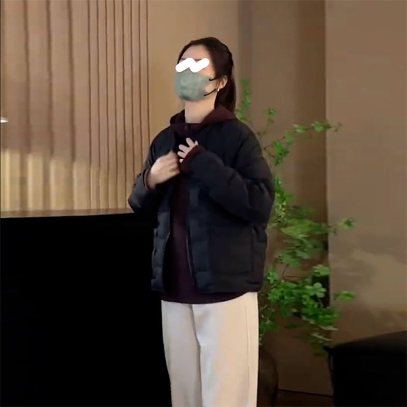 棉服女款冬季2025年开衫黑色长袖棉衣外套时尚洋气轻薄圆领上衣女