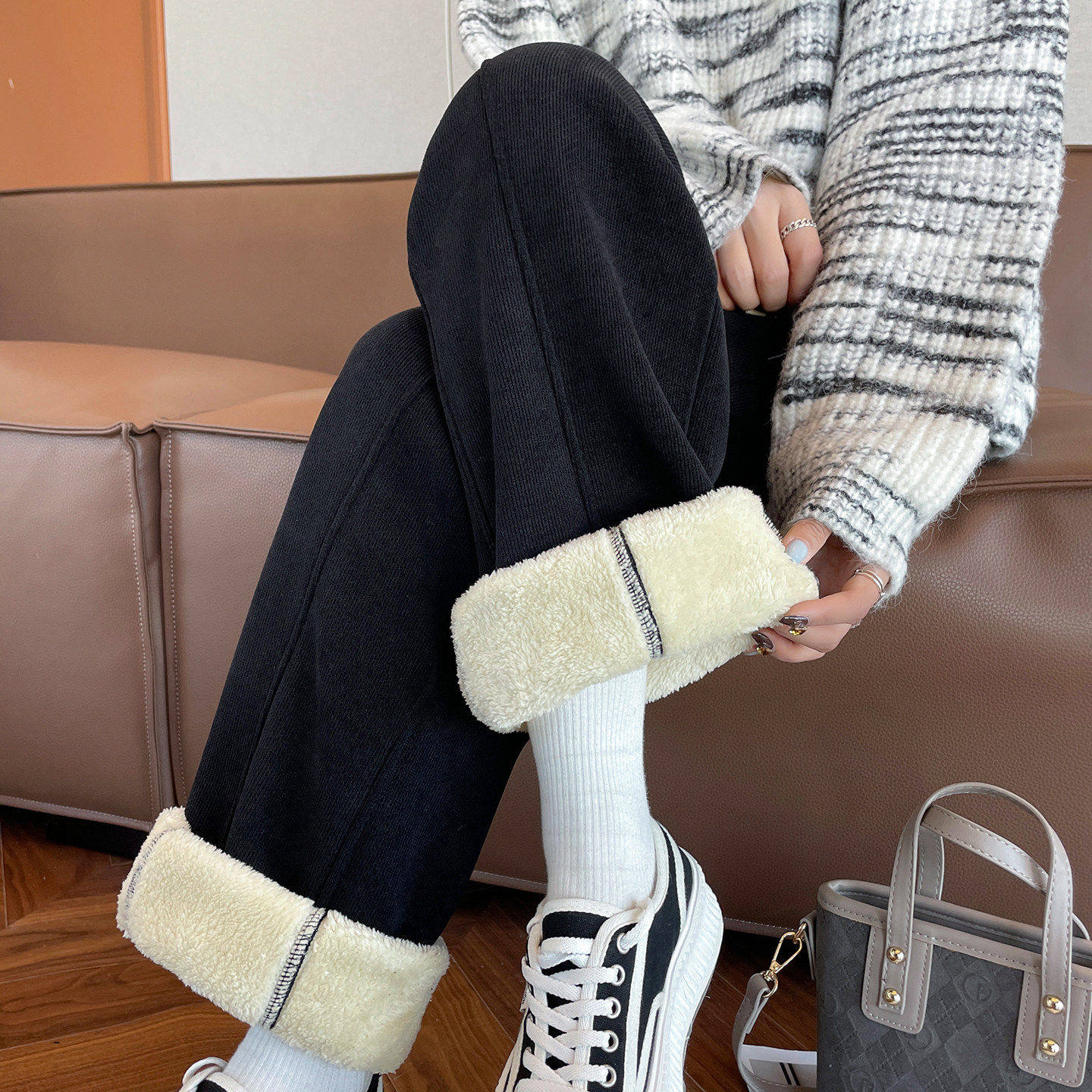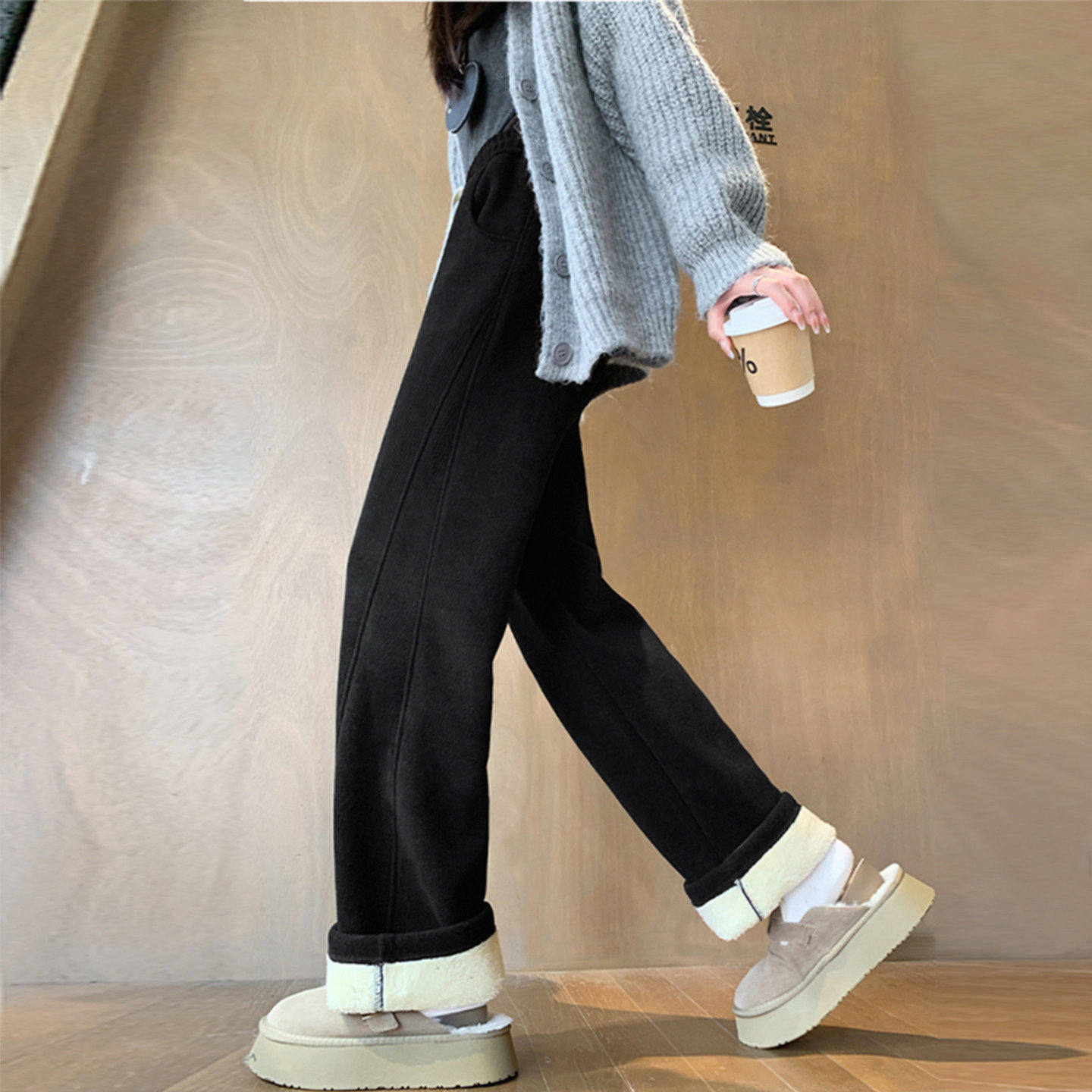 加厚东北棉裤女2025新款加长加绒裤子高个子糯米阔腿冬季直筒卫裤