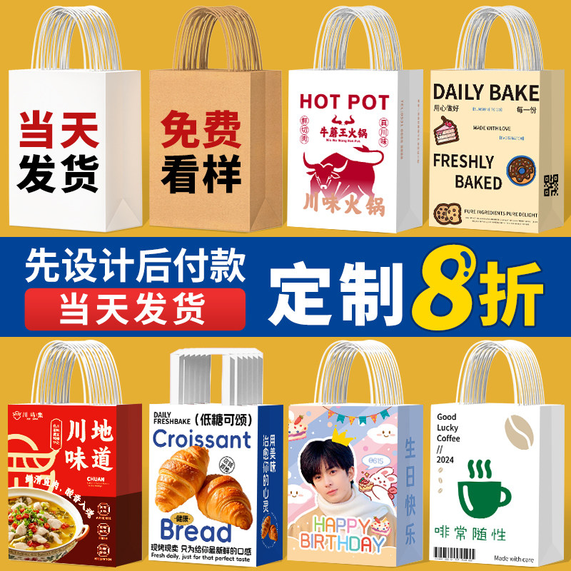 牛皮纸袋手提袋定制咖啡奶茶外卖打包袋烘焙包装袋子礼品袋印logo