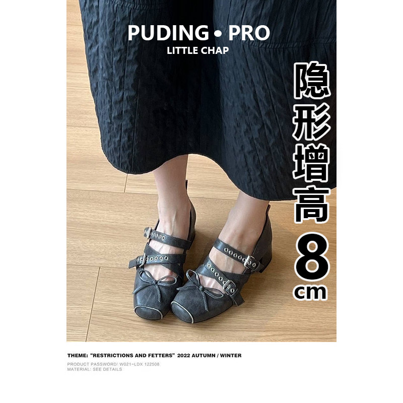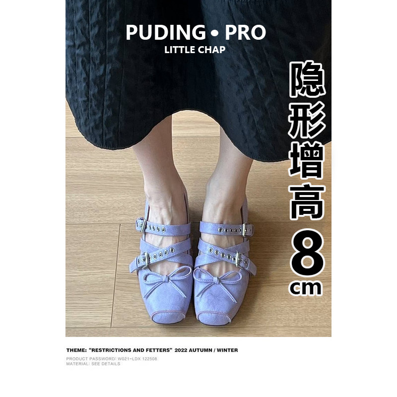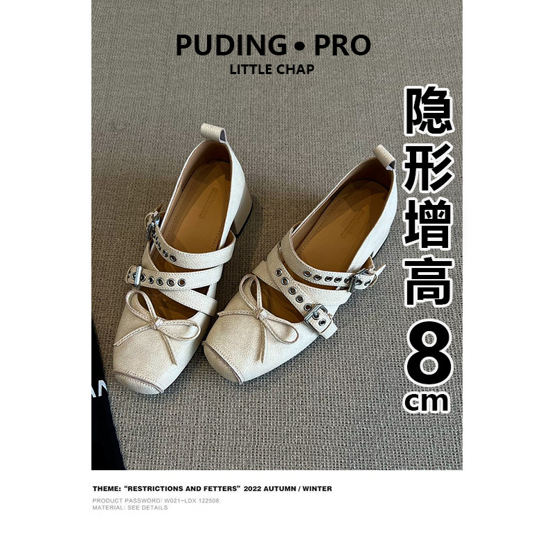 羊皮版~复古内增高交叉带方头玛丽珍鞋女款春季小个子芭蕾舞单鞋