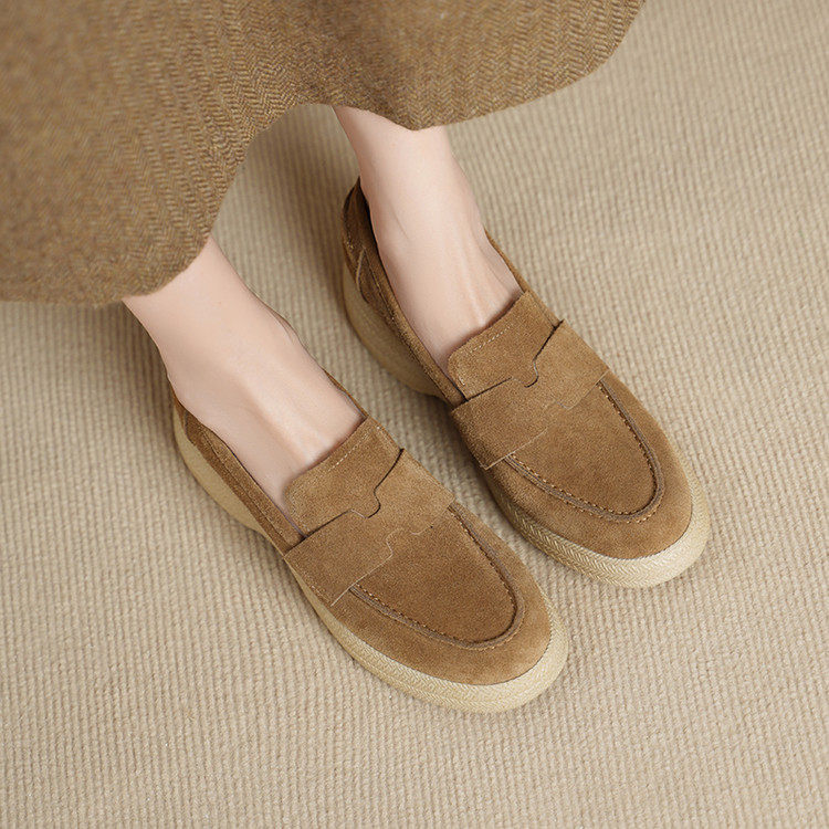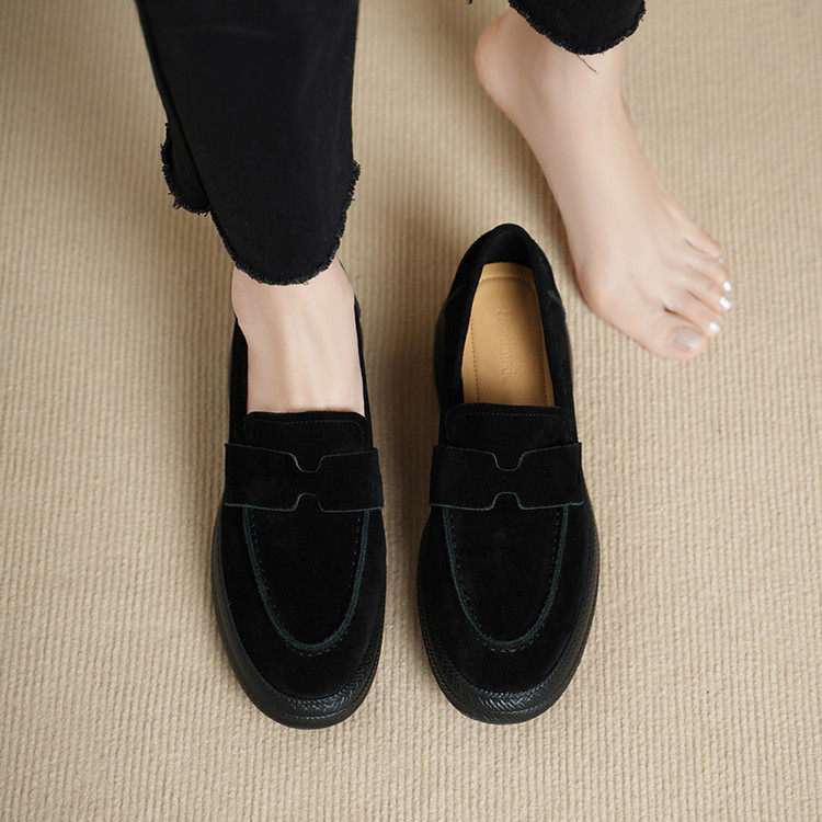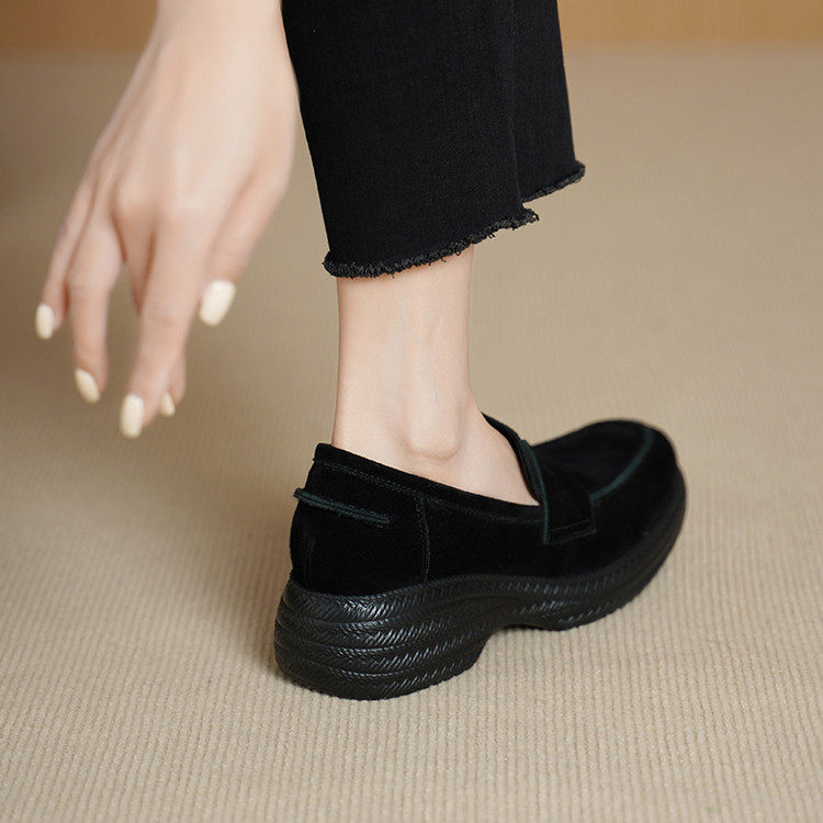 5cm高跟厚底小个子增高单鞋女真皮英伦风一脚蹬乐福鞋百搭懒人鞋