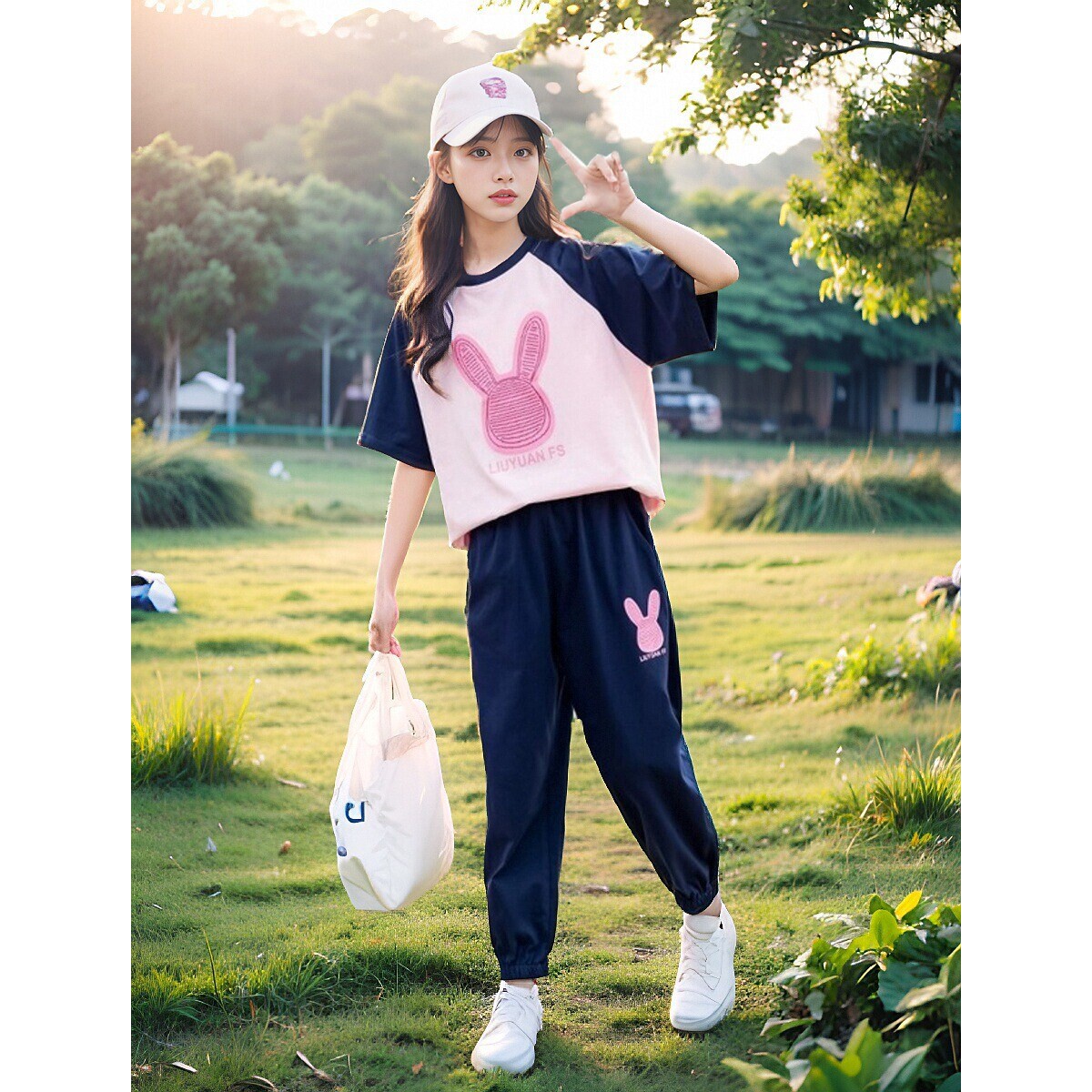 全棉纯棉女童套装运动两件套夏装短袖春秋女大童夏季儿童长裤春装