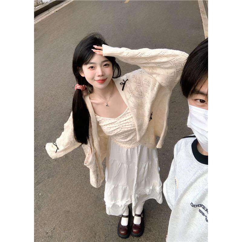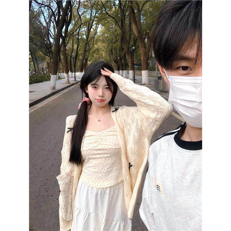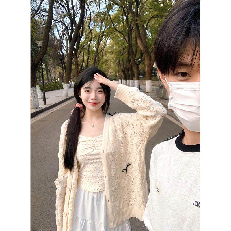学院风镂空薄款针织开衫女春款2026新款外搭披肩宽松休闲外套上衣