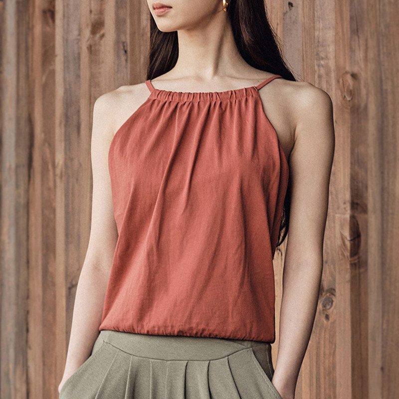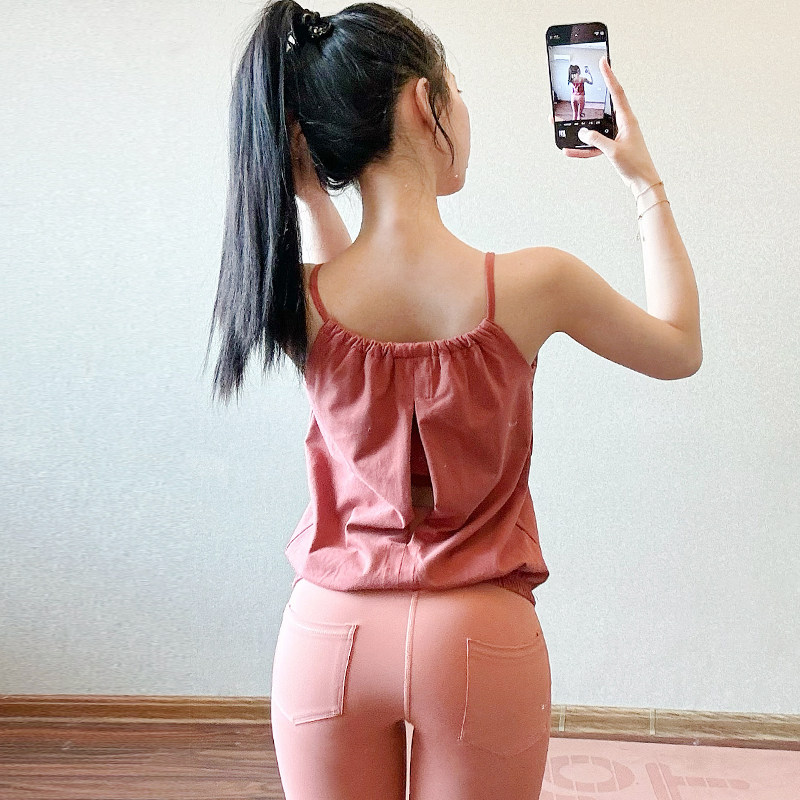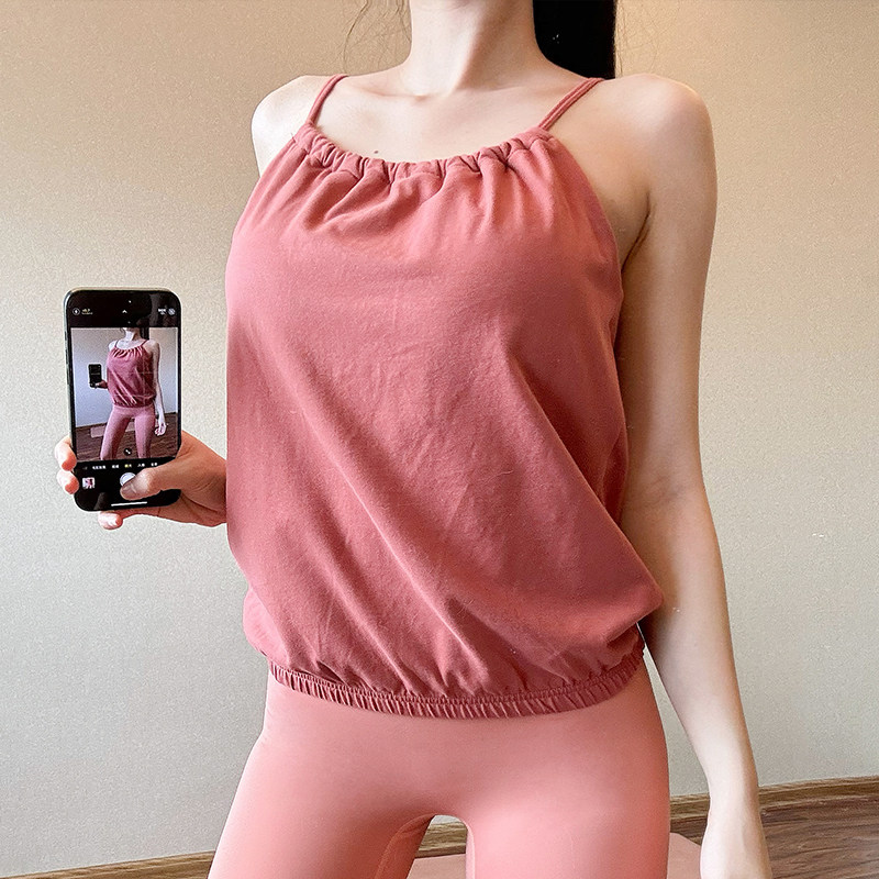 简约运动吊带背心女带胸垫瑜伽健身宽松透气吸汗外穿无袖上衣新款