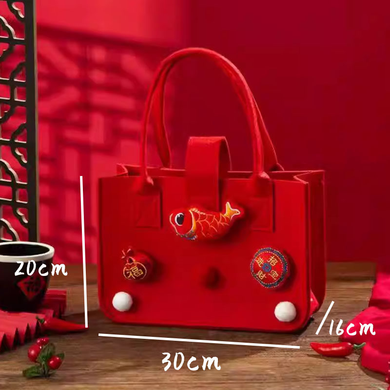 开门红礼物收纳袋手提毛毡包中国风结婚满月生日寿宴伴手礼包袋子