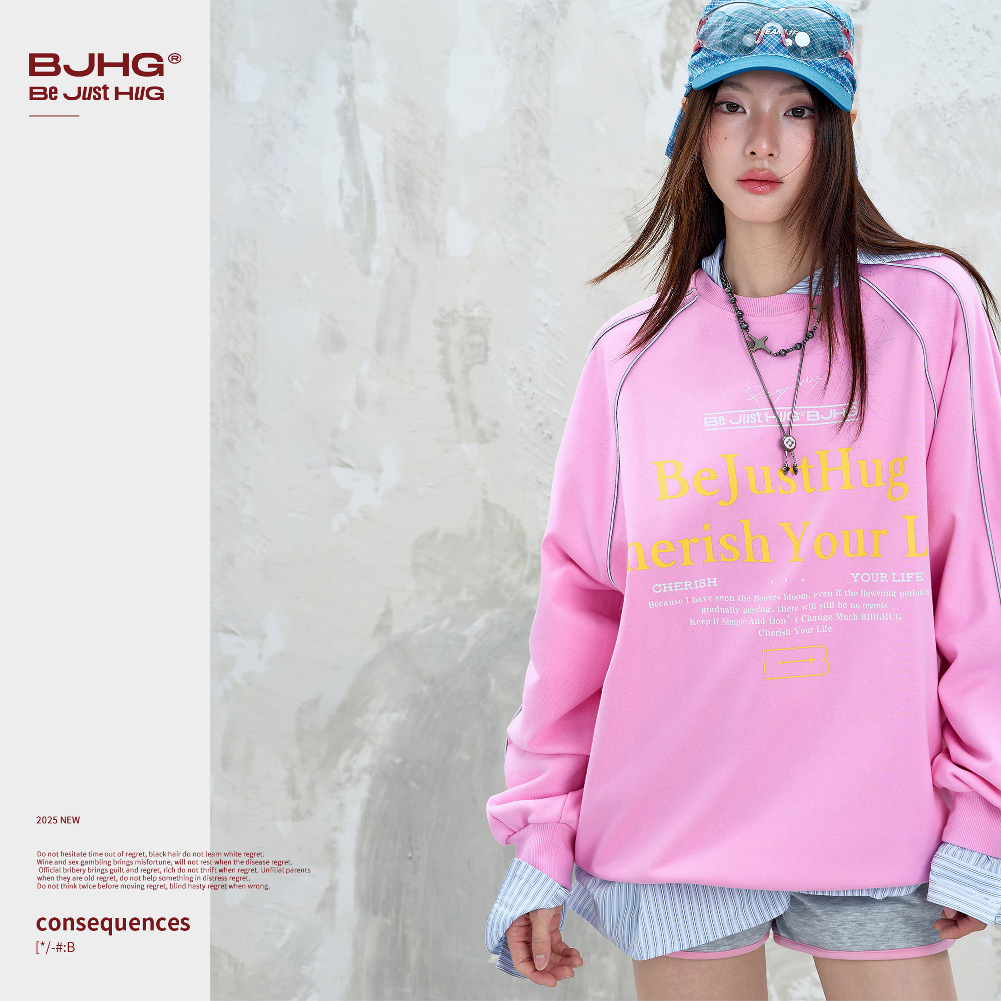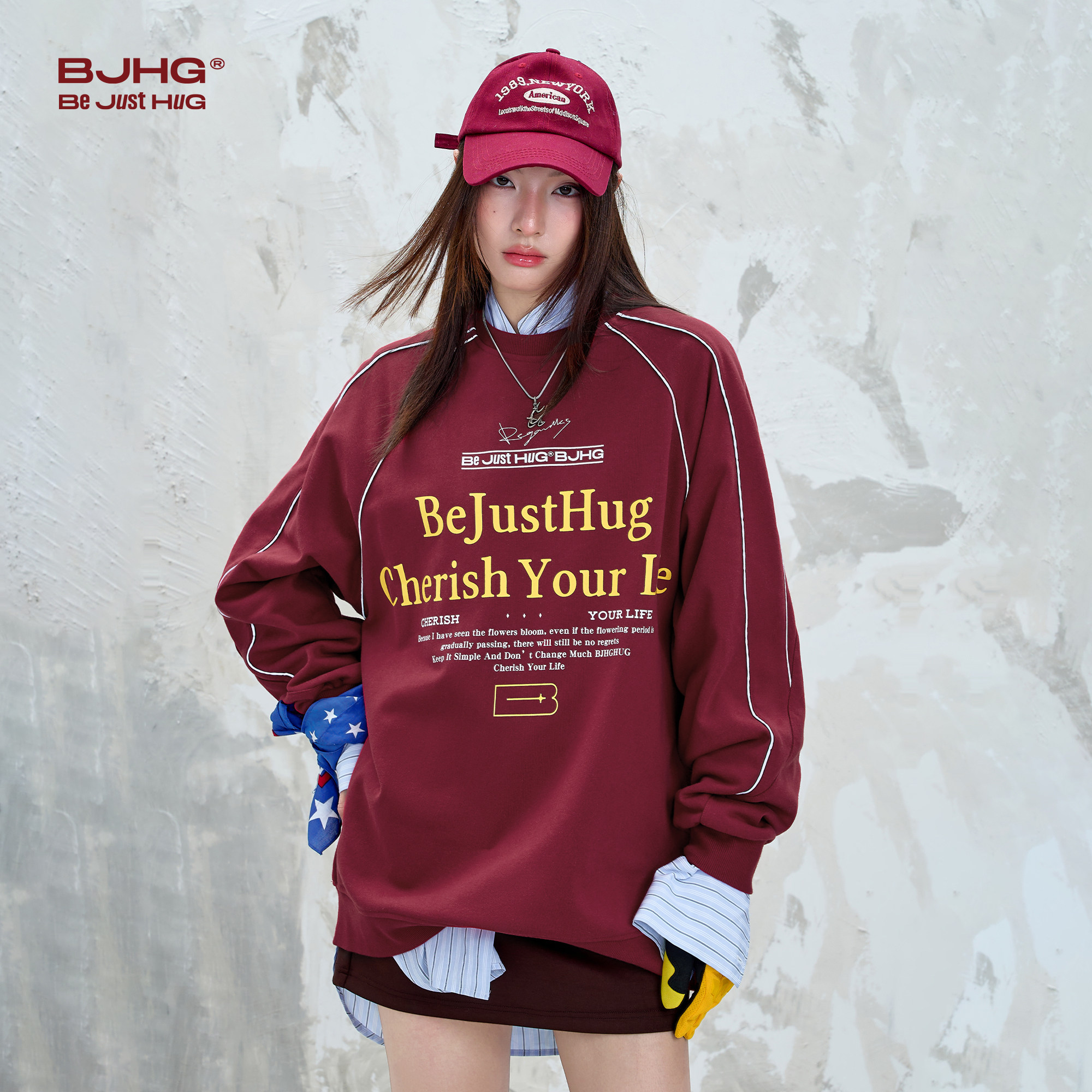 BJHG不计后果 美式圆领卫衣男款冬季长袖T恤暖皮运动情侣装外套女