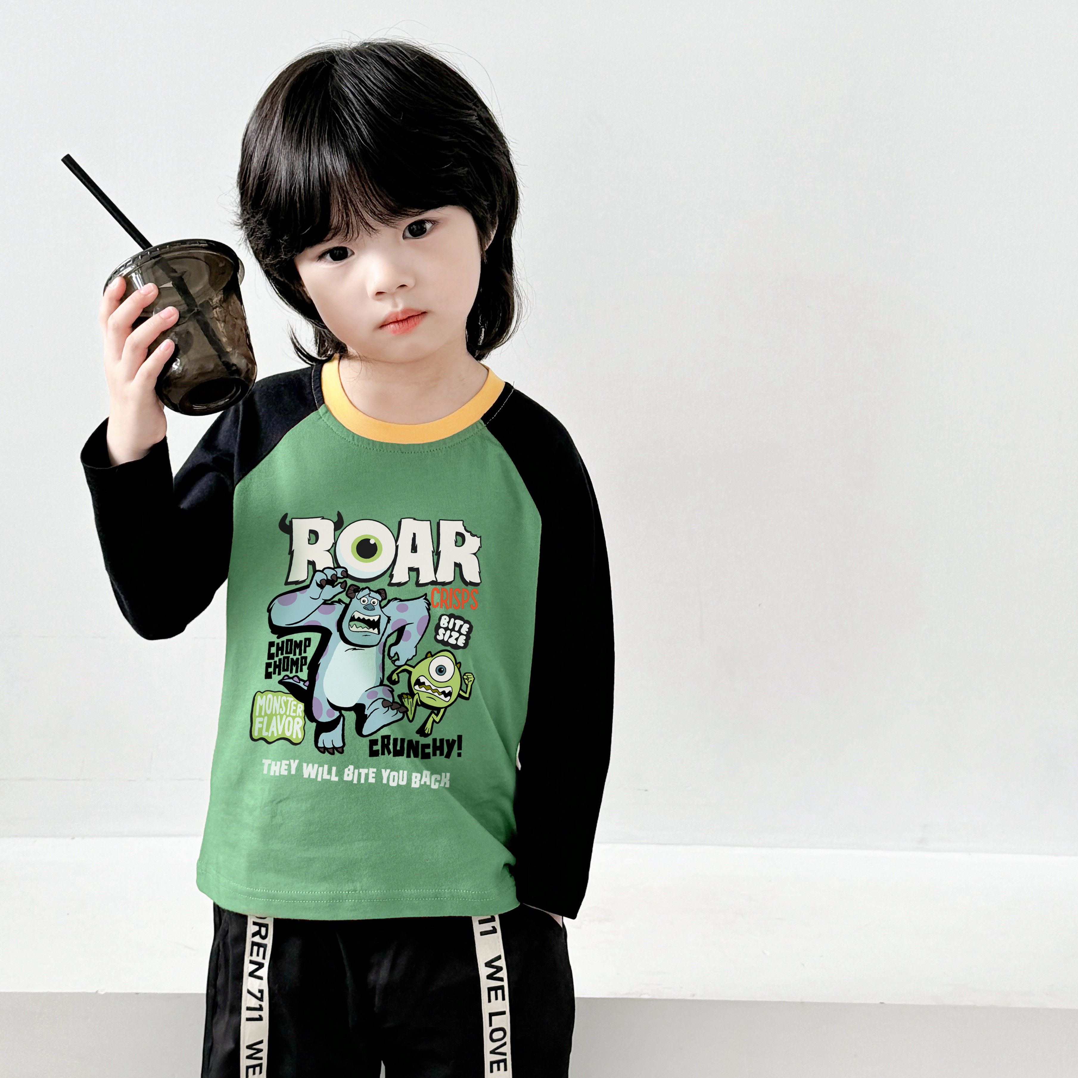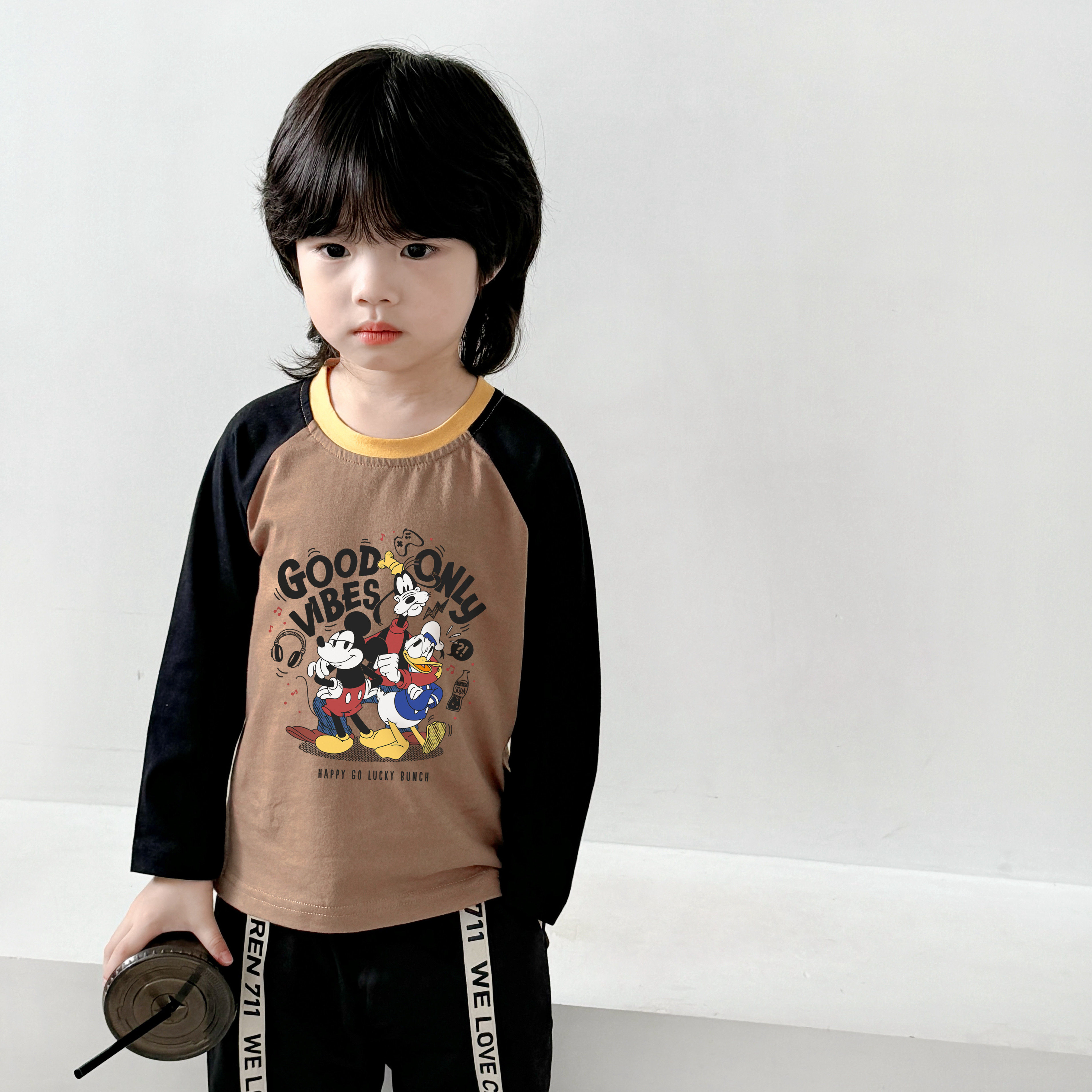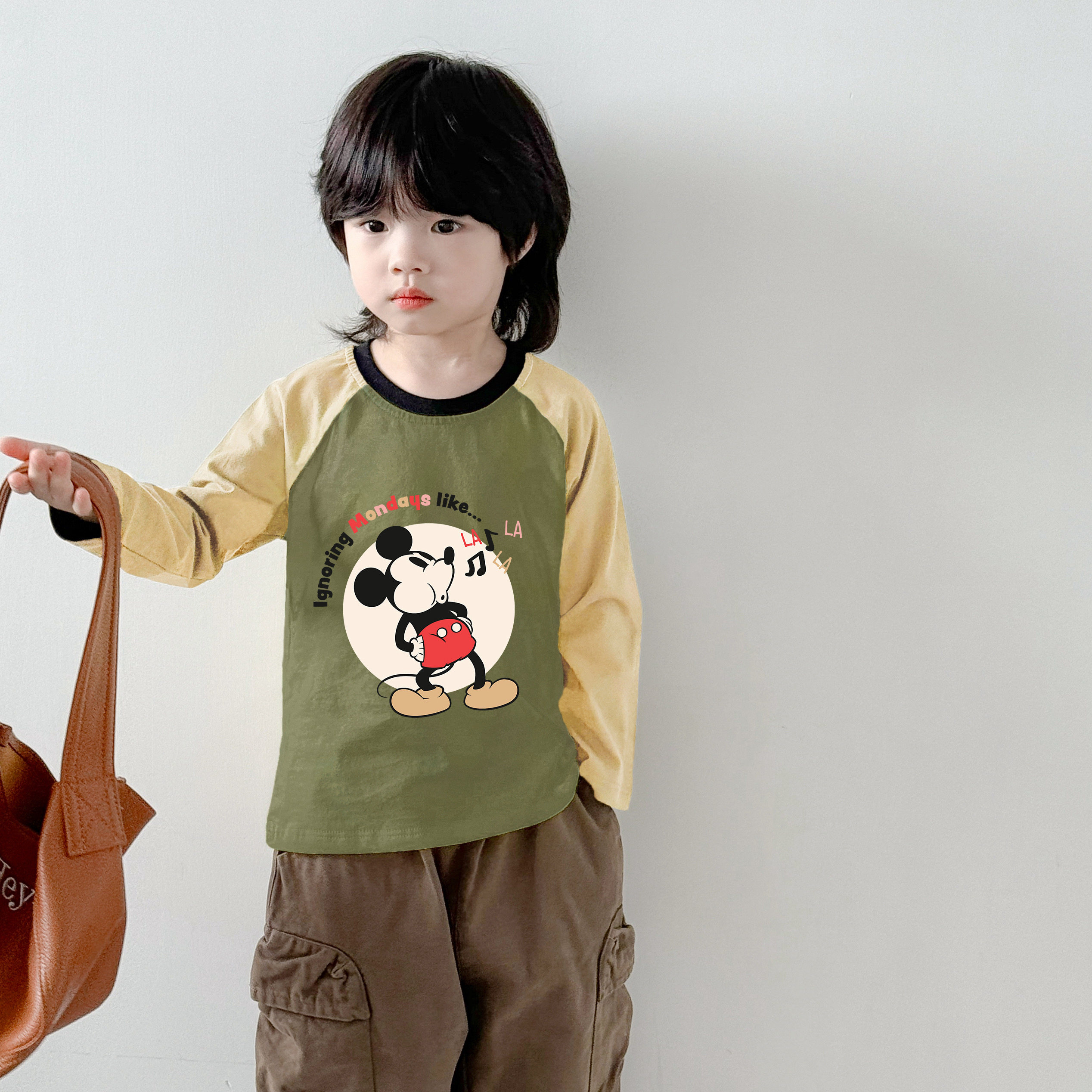 迪士尼儿童新款纯棉长袖T恤男童卡通圆领薄款卫衣女童上衣打底衫