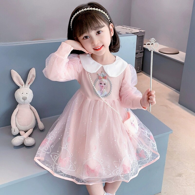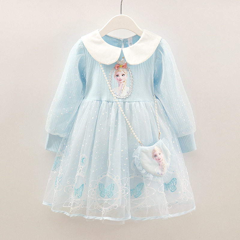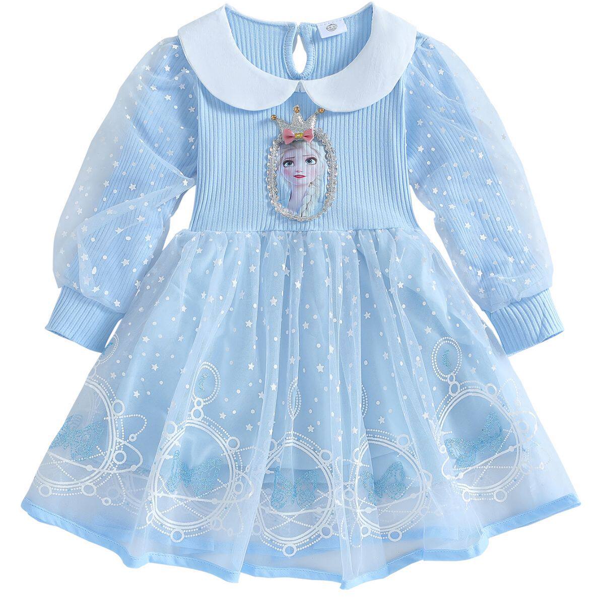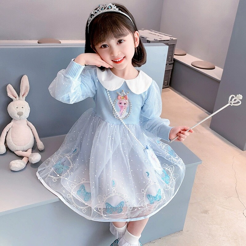 女童公主裙秋冬款连衣裙艾莎裙子女孩生日宝宝礼服薄款洋气冬装爱