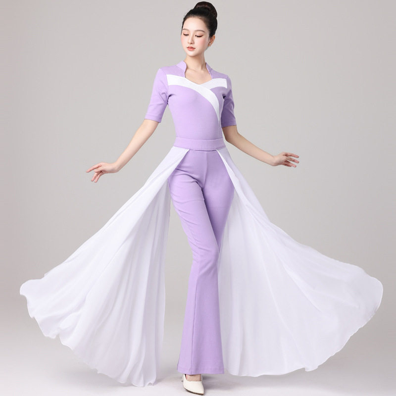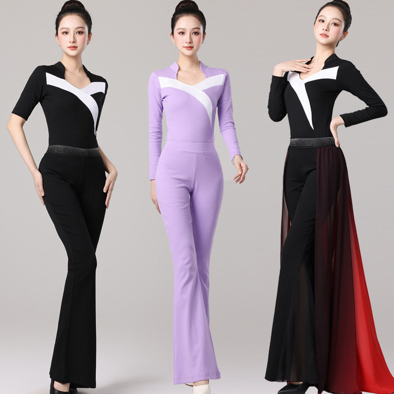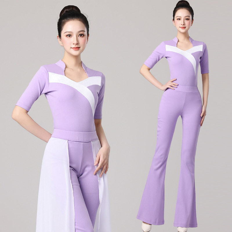 形体服套装女成人新款春季纯棉喇叭裤立领上衣礼仪高端训练服装