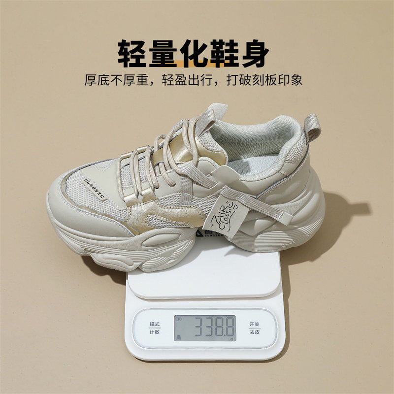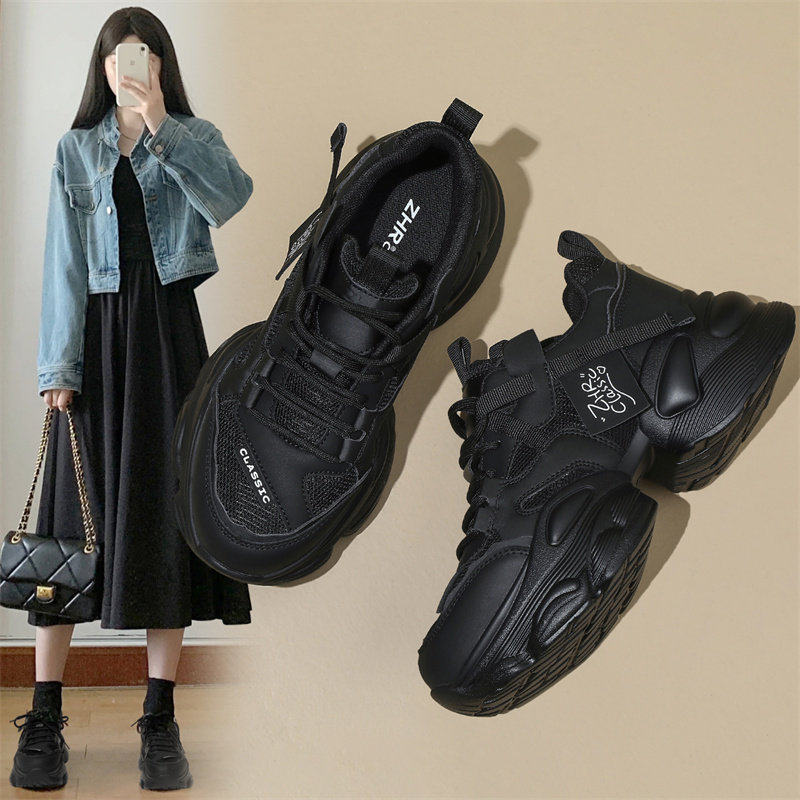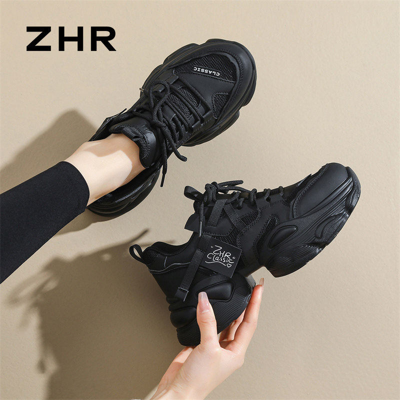 ZHR老爹鞋女款2026春秋季新款厚底增高显脚小休闲运动鞋黑色女鞋