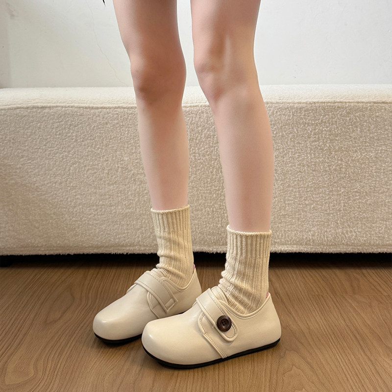 复古厚底皮面勃肯鞋女2026新款春季魔术贴增高百搭一脚蹬软底单鞋
