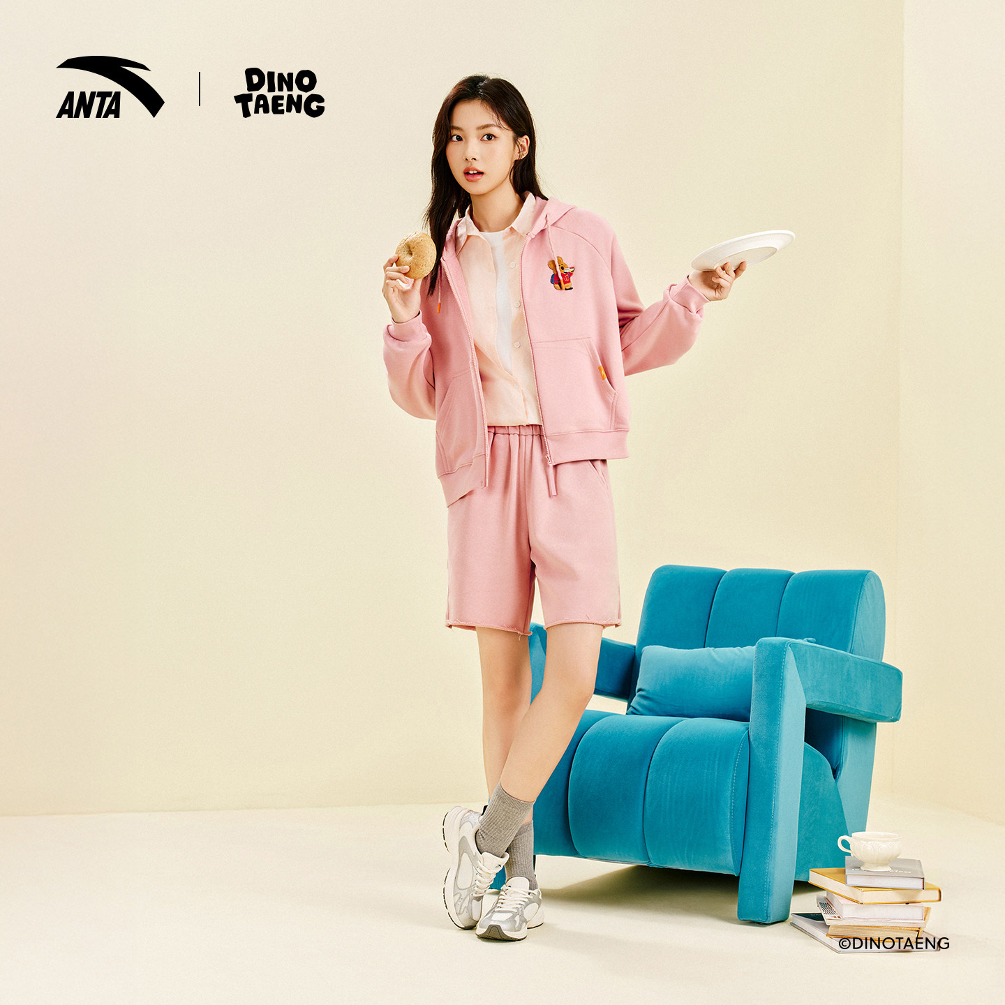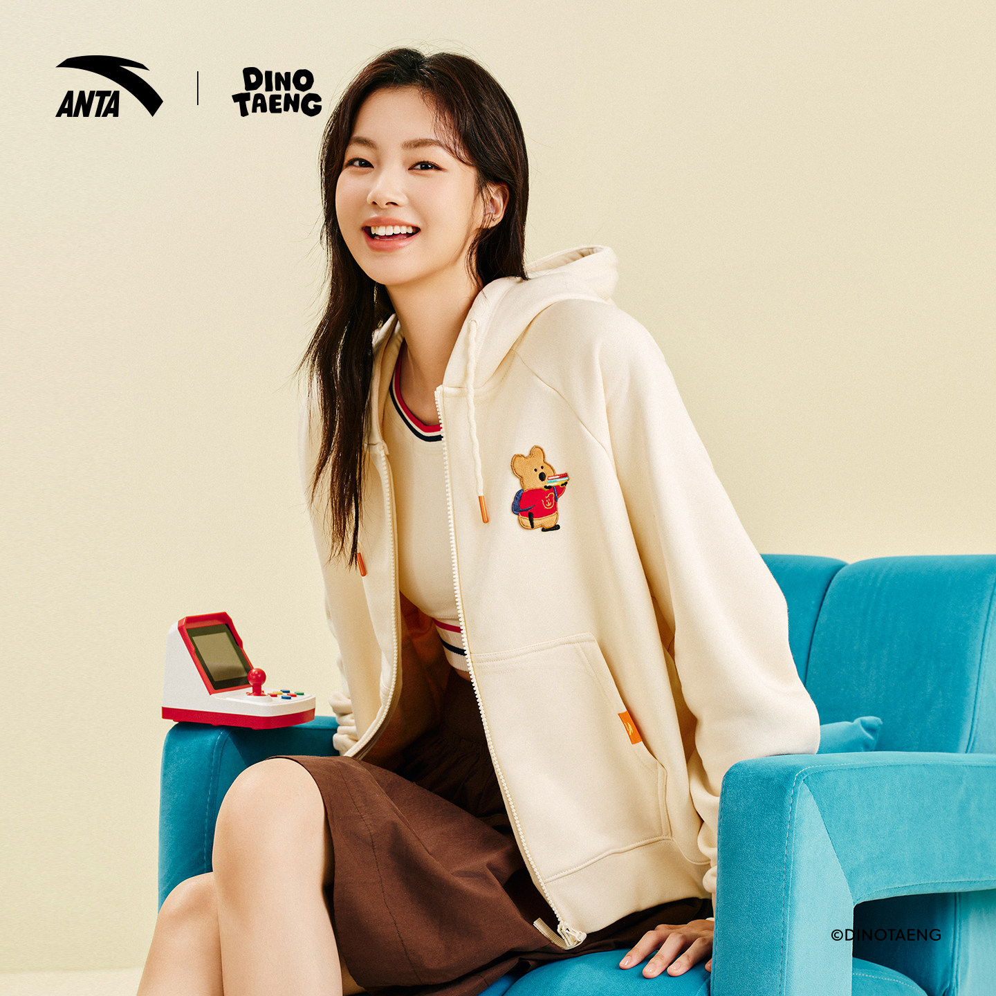 安踏×呆萌町联名丨休闲风卫衣外套女宽松刺绣连帽开衫162548730