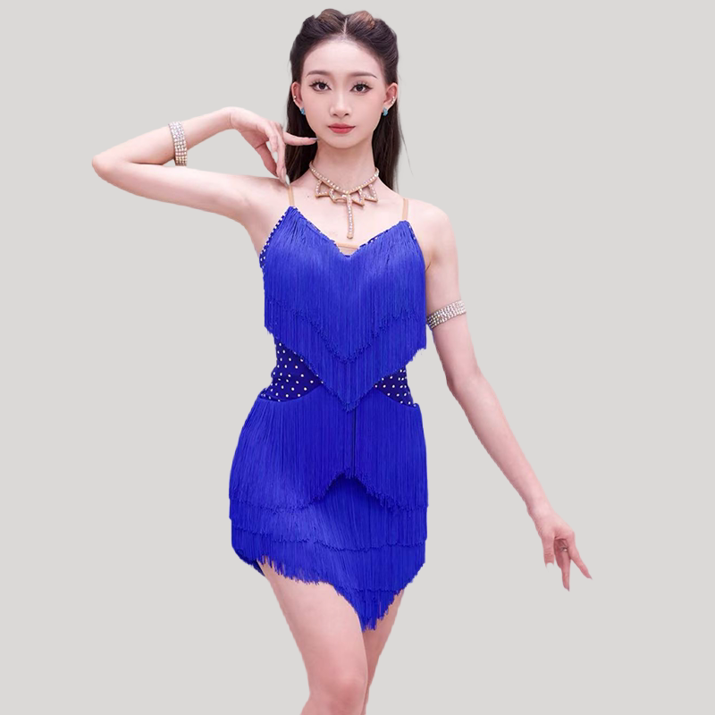 2026新款拉丁舞比赛花服专业艺考舞蹈裙成人表演镶钻流苏舞蹈裙夏